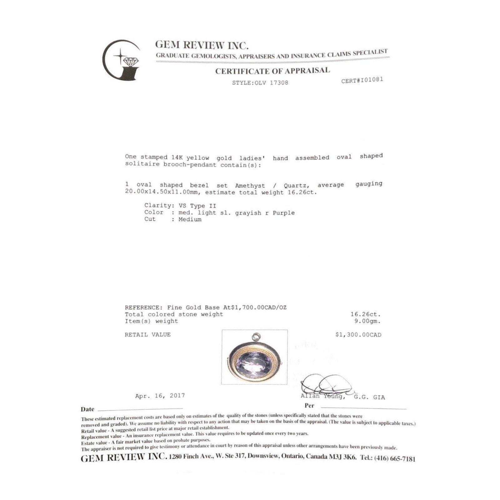 Antique Amethyst Brooch/Pendant in 14kt Yellow Gold; Comes with $1,300 Gem Review Appraisal