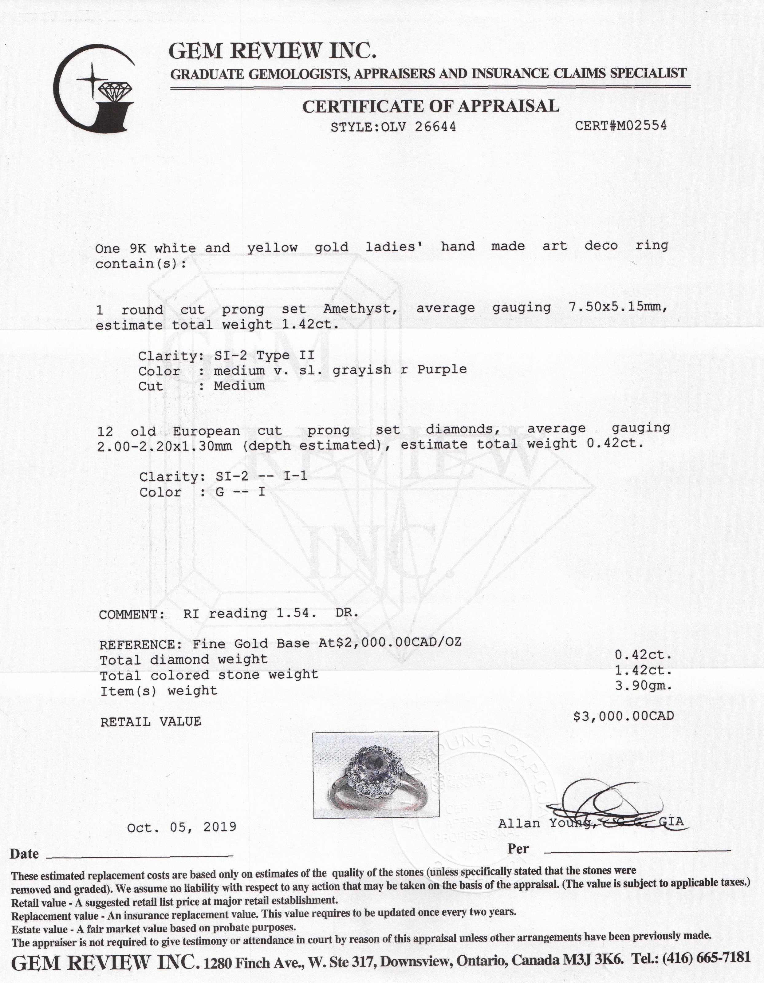Antique Art Deco Amethyst and Diamond Cocktail Ring