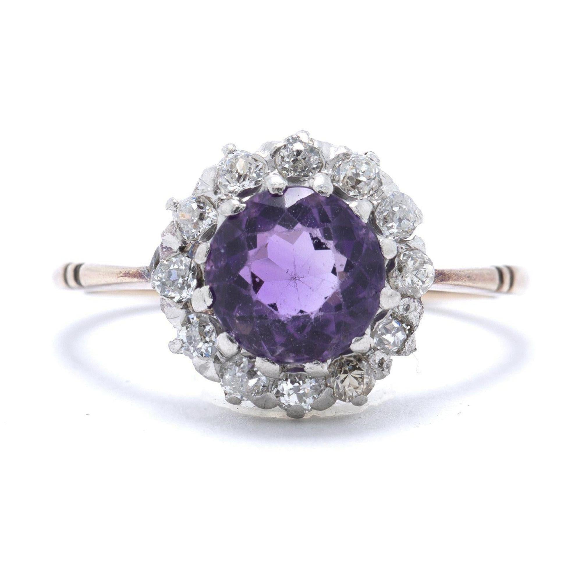 Antique Art Deco Amethyst and Diamond Cocktail Ring