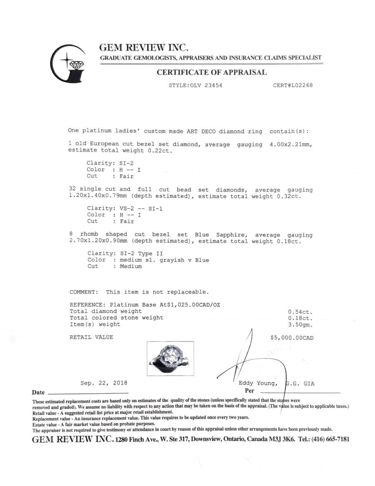Antique Art Deco Diamond & Blue Sapphire Ring