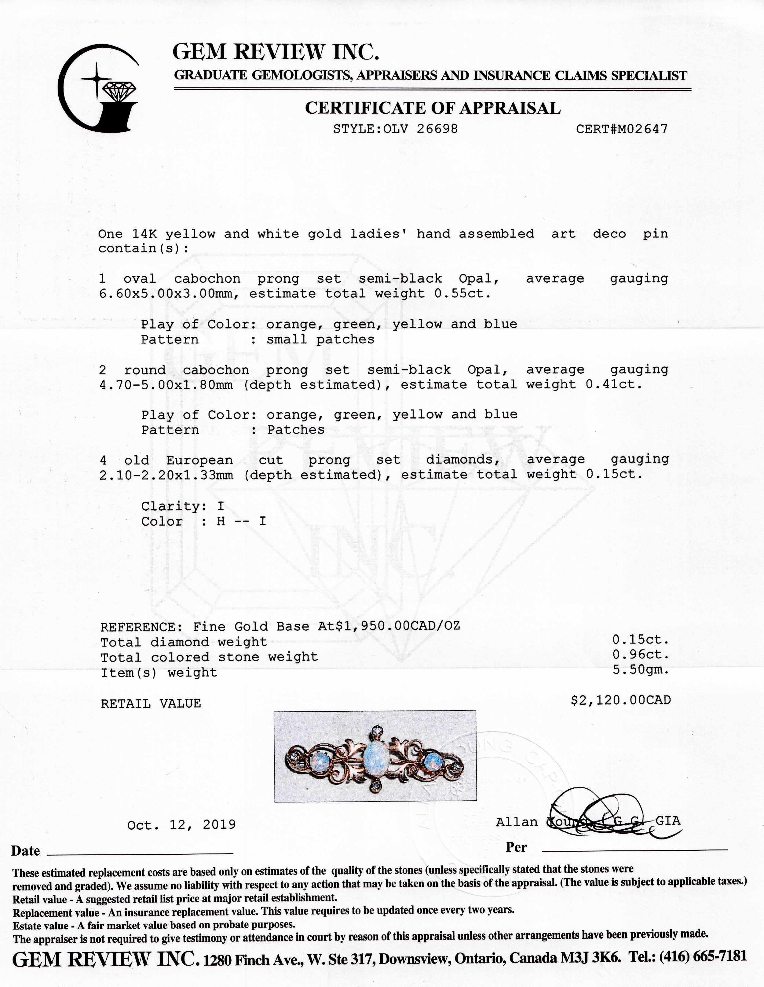 - 1 Oval Cabochon Opal Weighing Approximately 0.55 ct.