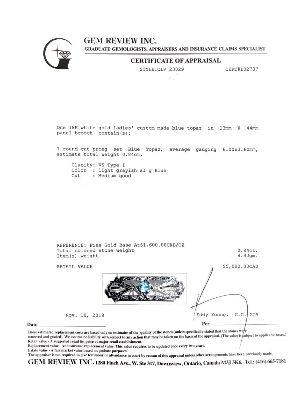 - 1 Round Cut Blue Topaz Weighing Approximately 0.84 ct.