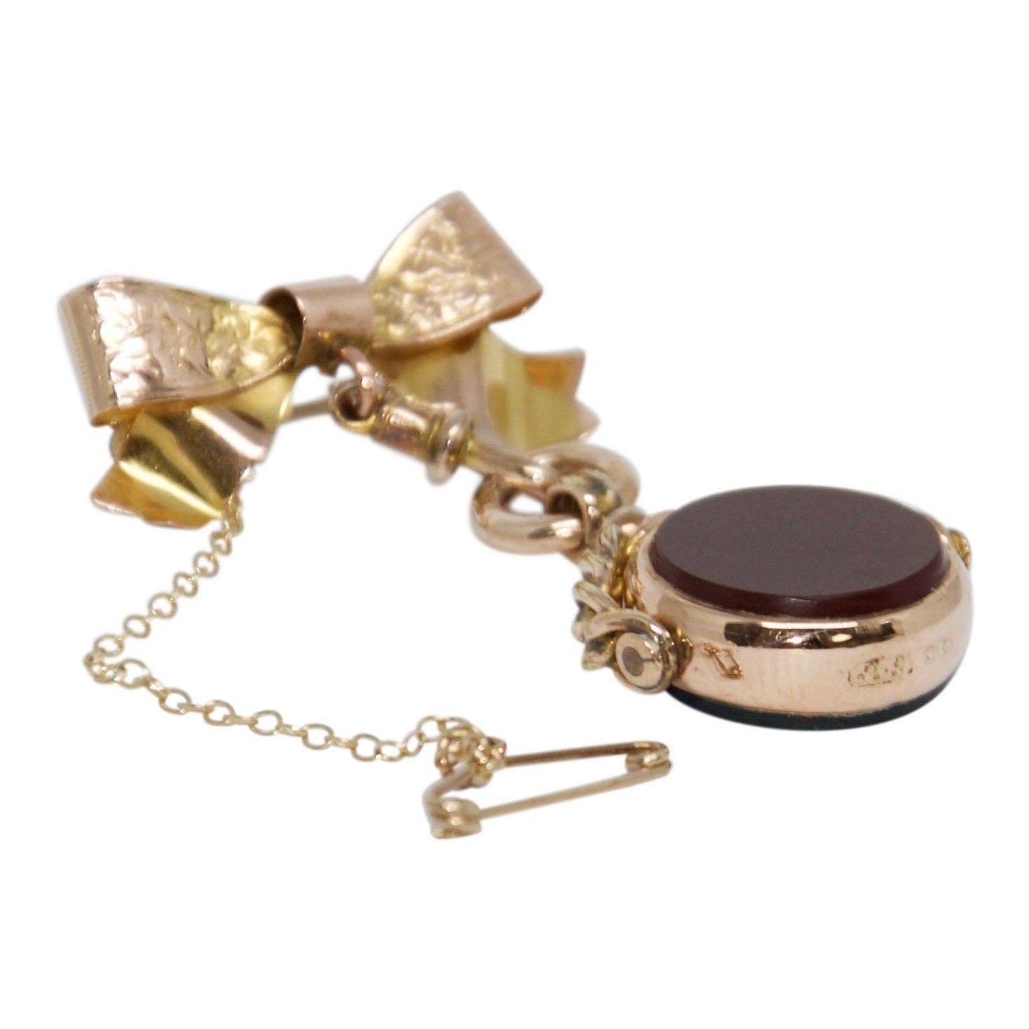Antique Bow Brooch with Carnelian & Bloodstone