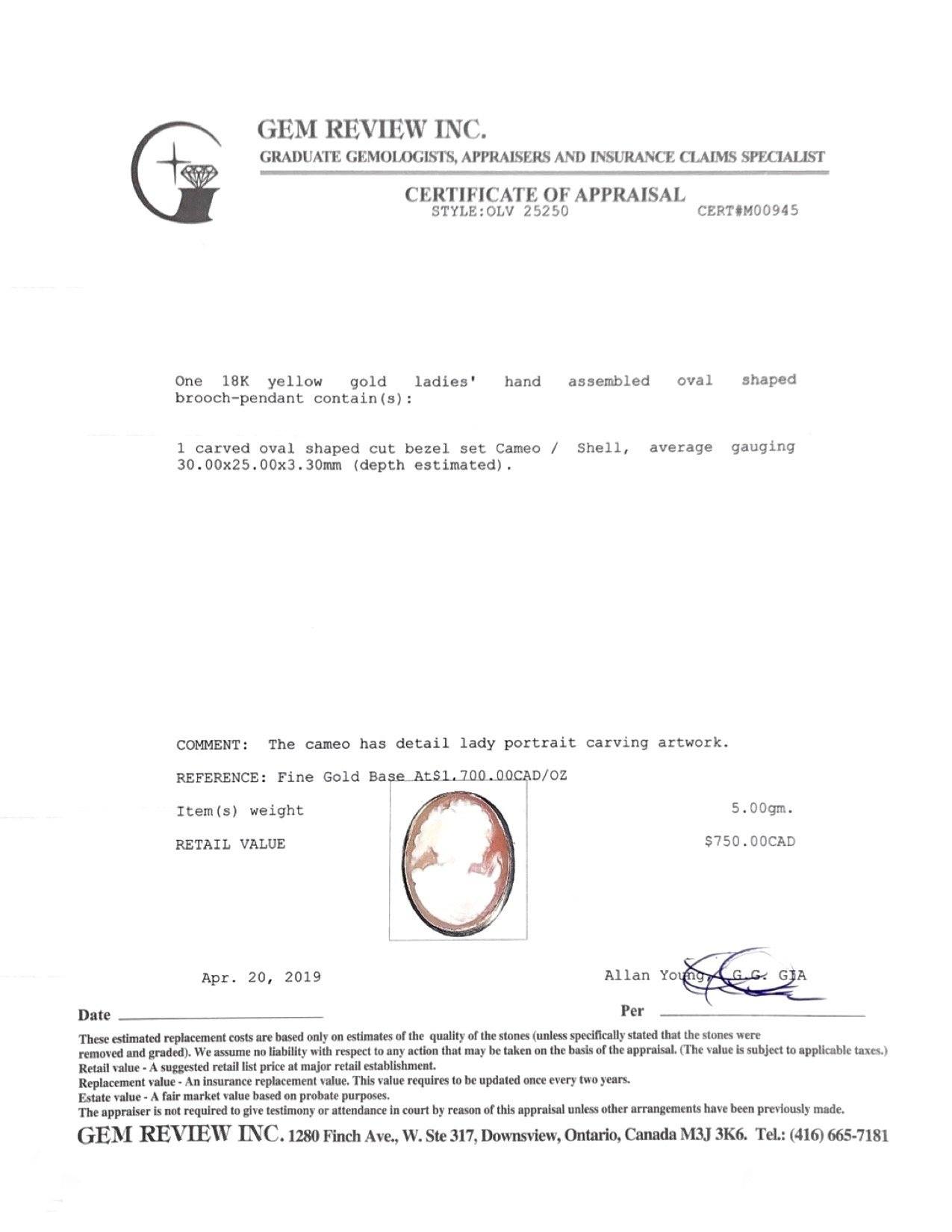 - 1 Carved Oval Cameo, Approximately 30.00 x 25.00 x 3.30 mm