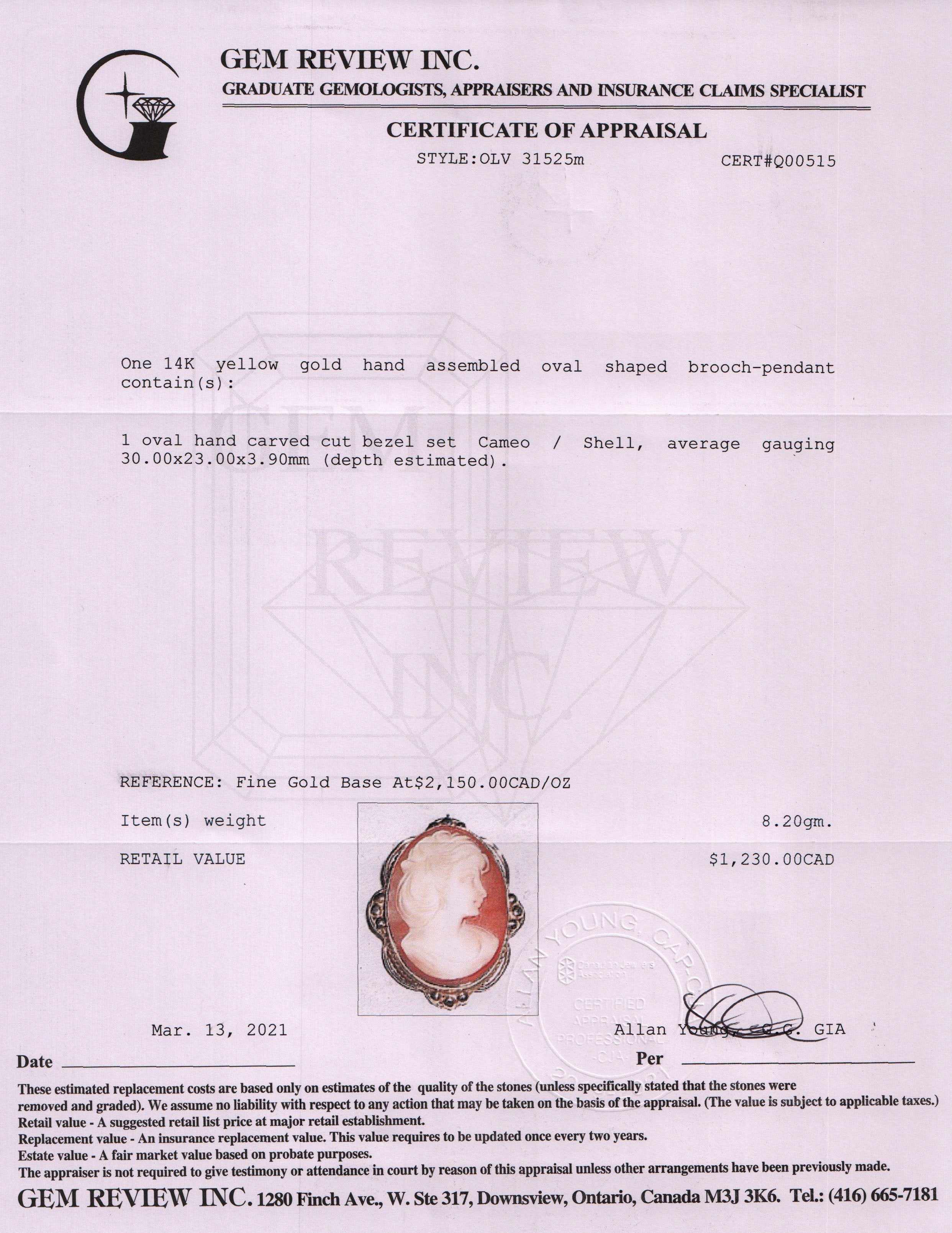- 1 Hand Carved Bezel Set Cameo, Approximately 30.00 x 23.00 x 3.90 mm