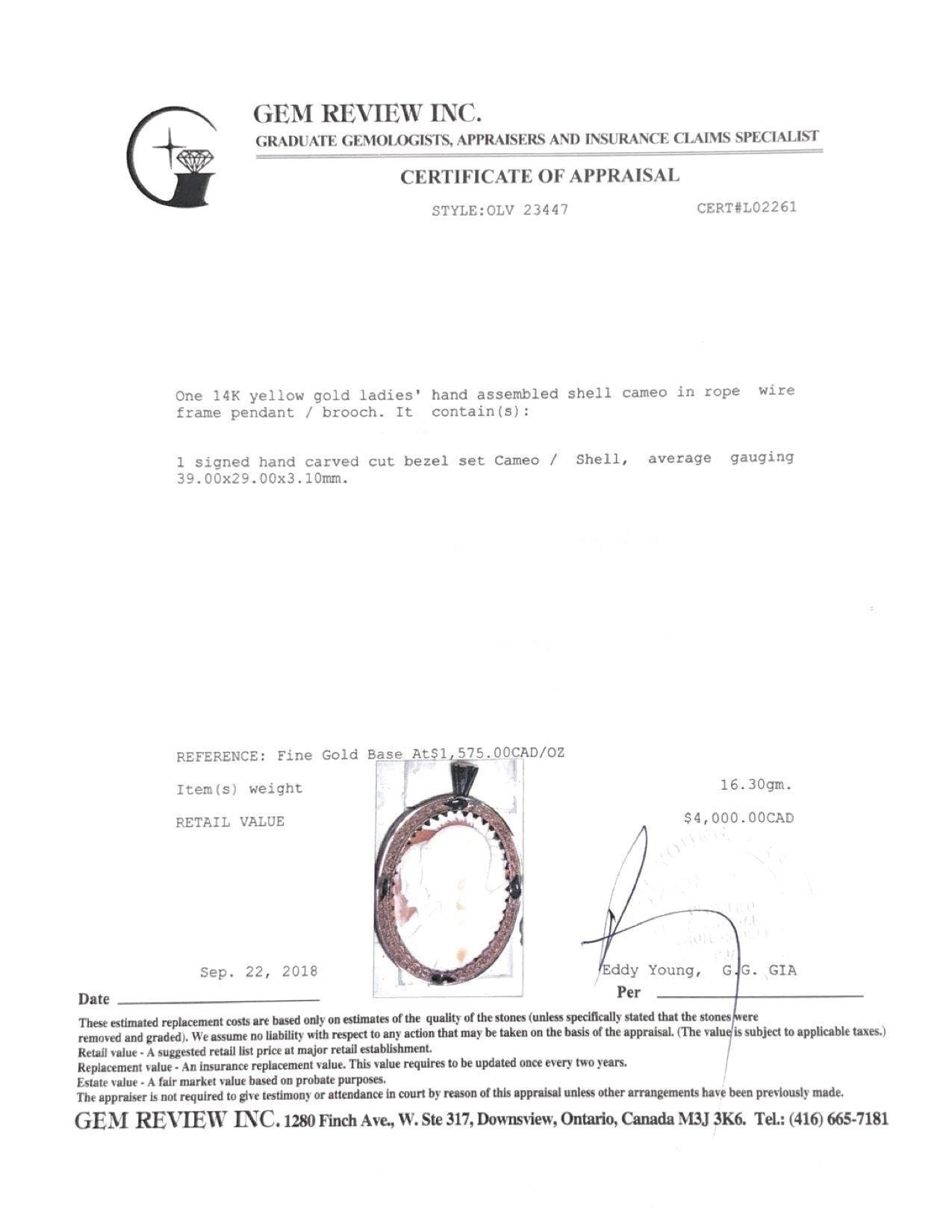 - 1 Hand Carved Cameo, Approximately 39 x 29 x 3.1 mm