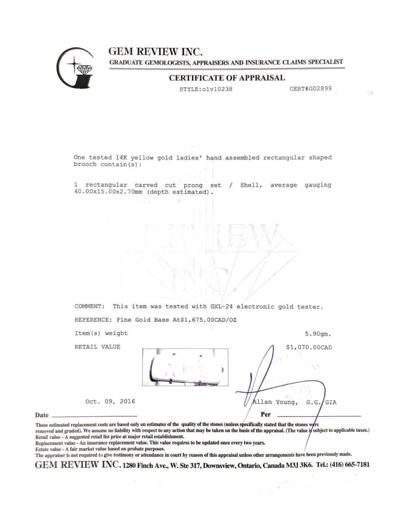 Antique Carved Coral Cameo Brooch in 14kt yellow gold; Contains $1,070 Gem Review Appraisal