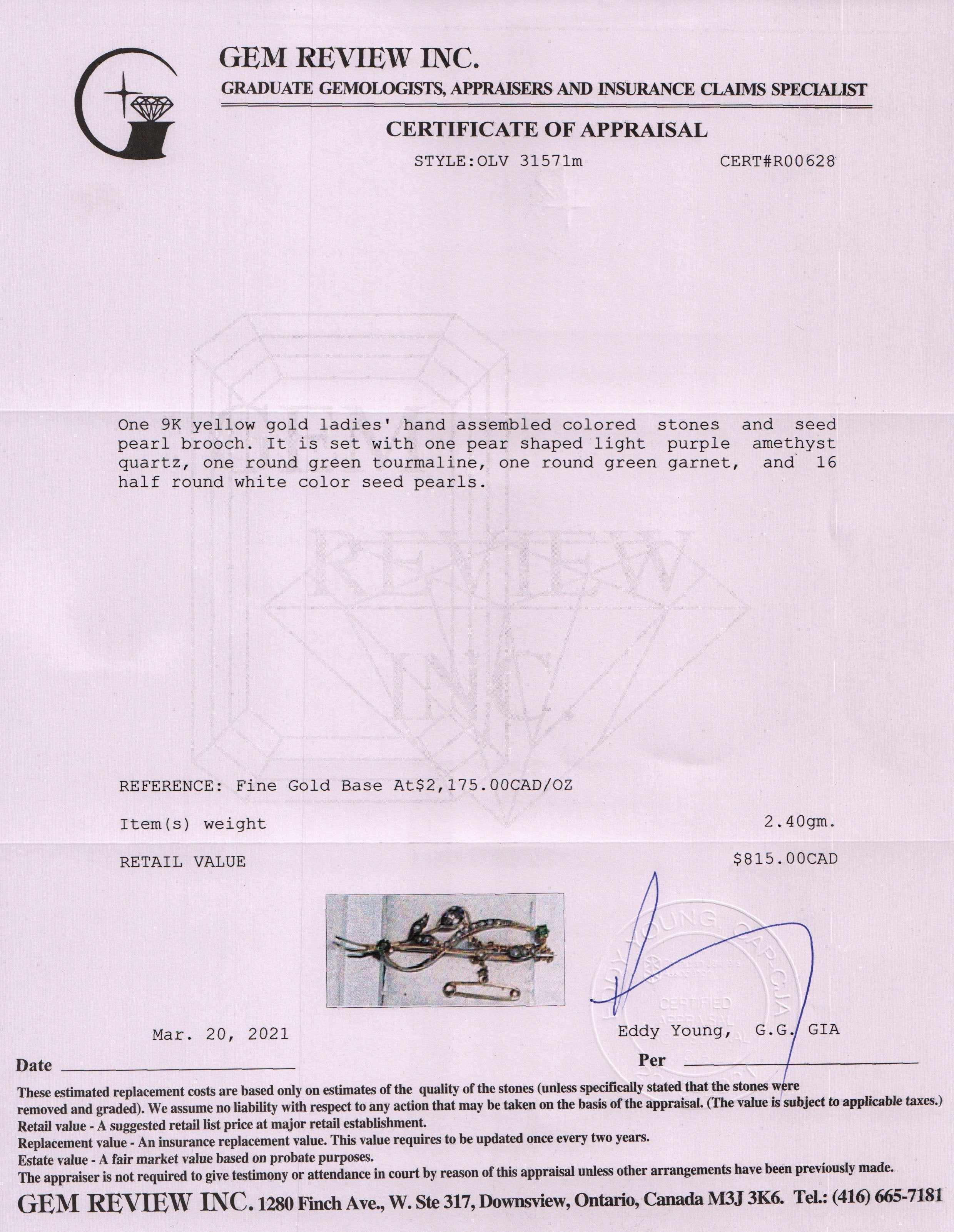 • Coloured Stones Including Amethyst Quartz, Tourmaline & Green Garnet