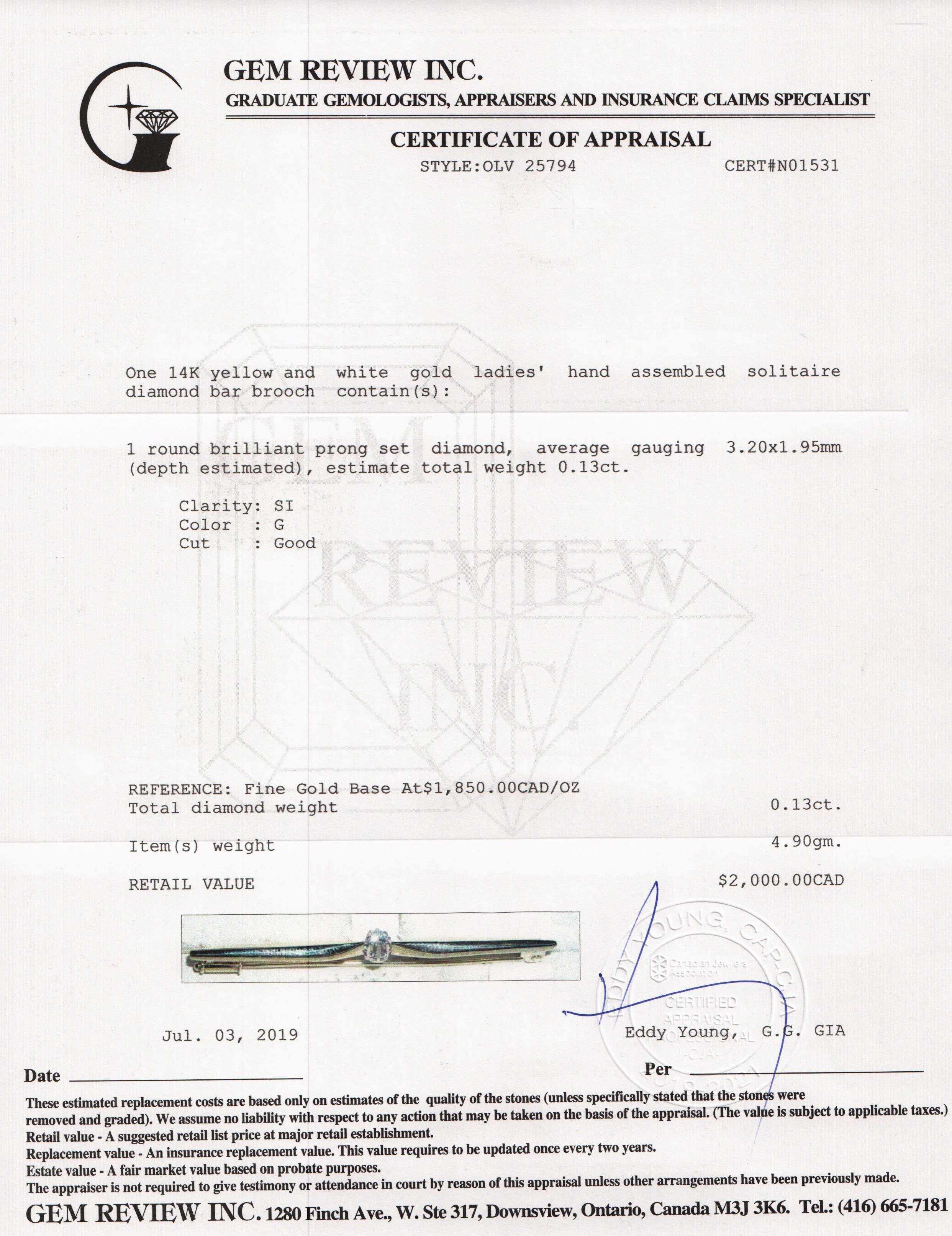 - 1 Round Brilliant Cut Diamond Weighing Approximately 0.13 ct. of SI Clarity, G Colour, Good Cut