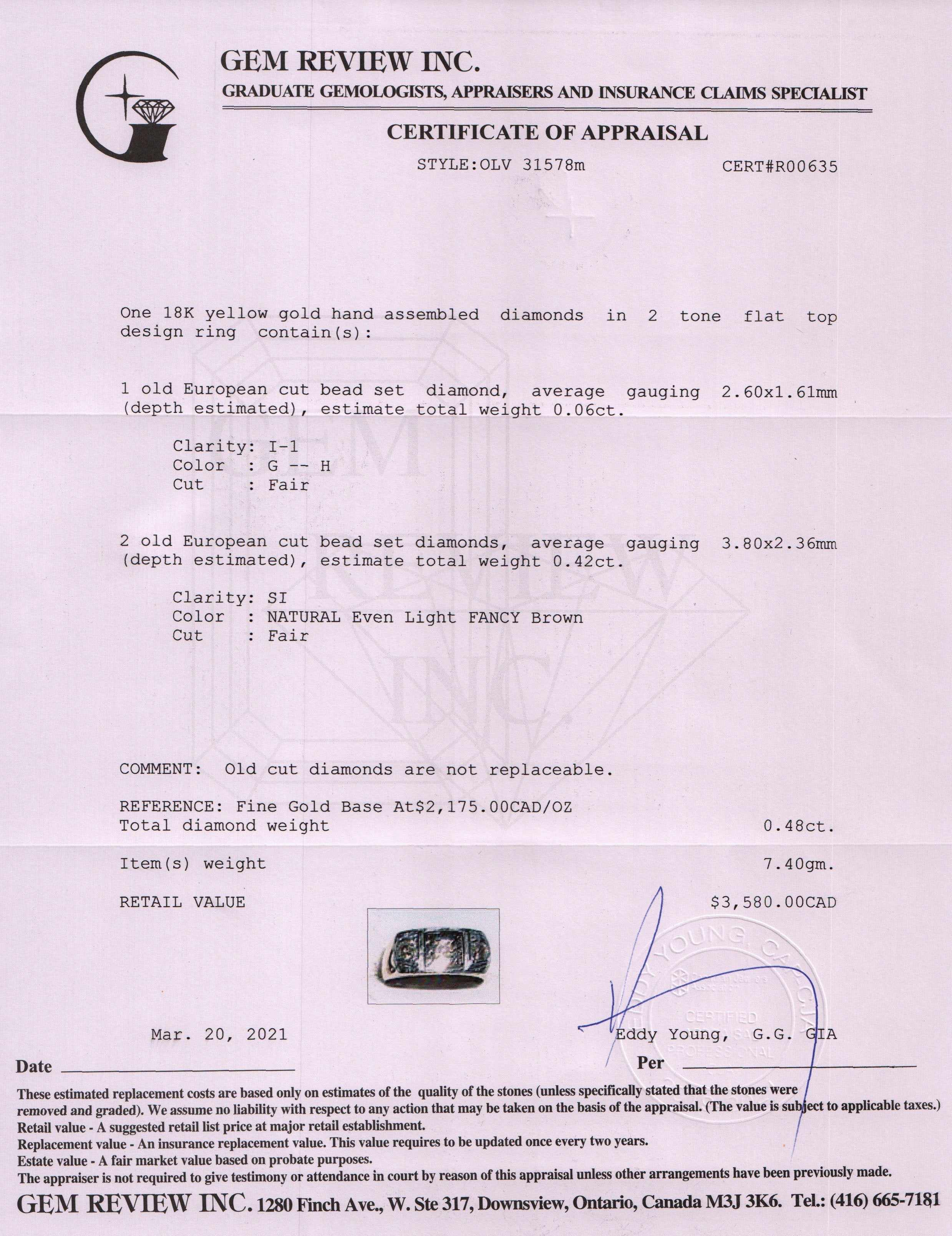 - 2 Old European Cut Fancy Brown Diamonds Totalling Approximately 0.42 ct.