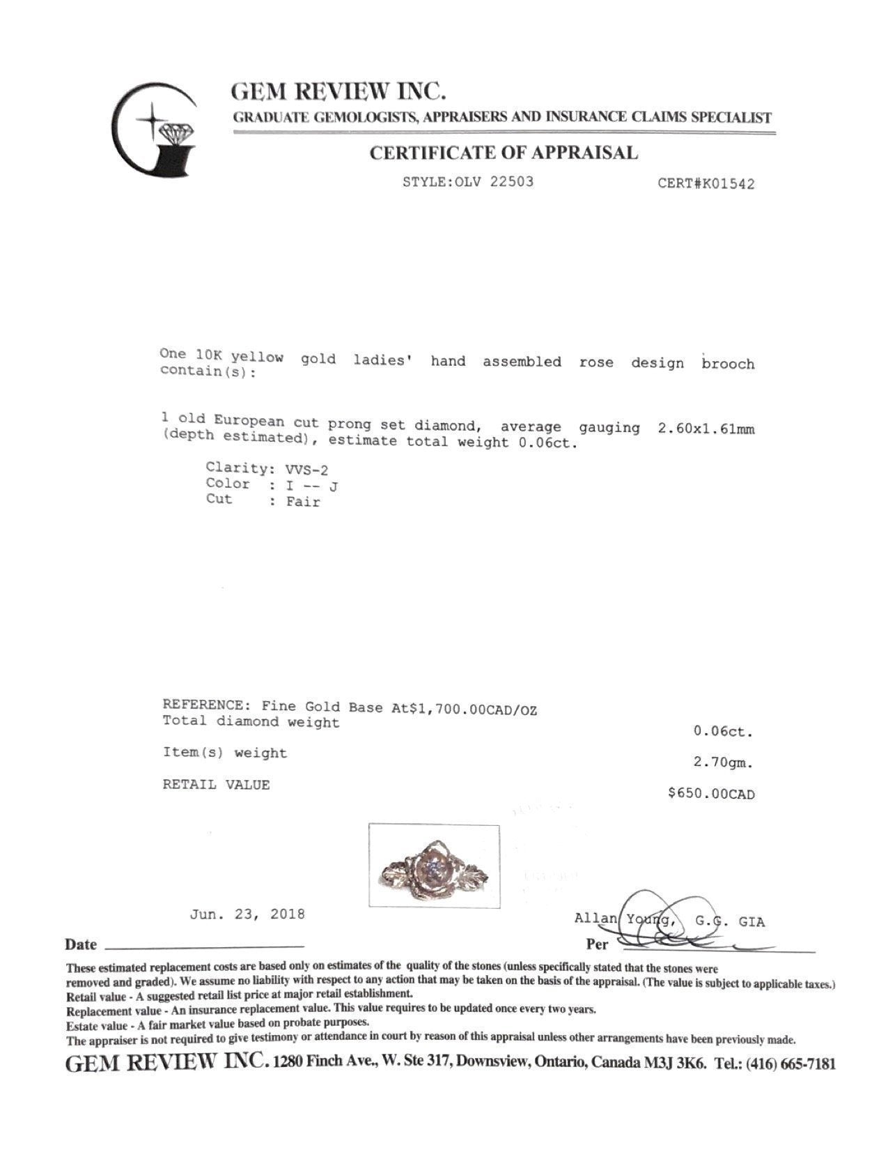 • 1 Old European Cut Diamond Weighing Approximately 0.06 ct. of VVS2 Clarity, I-J Colour, Fair Cut