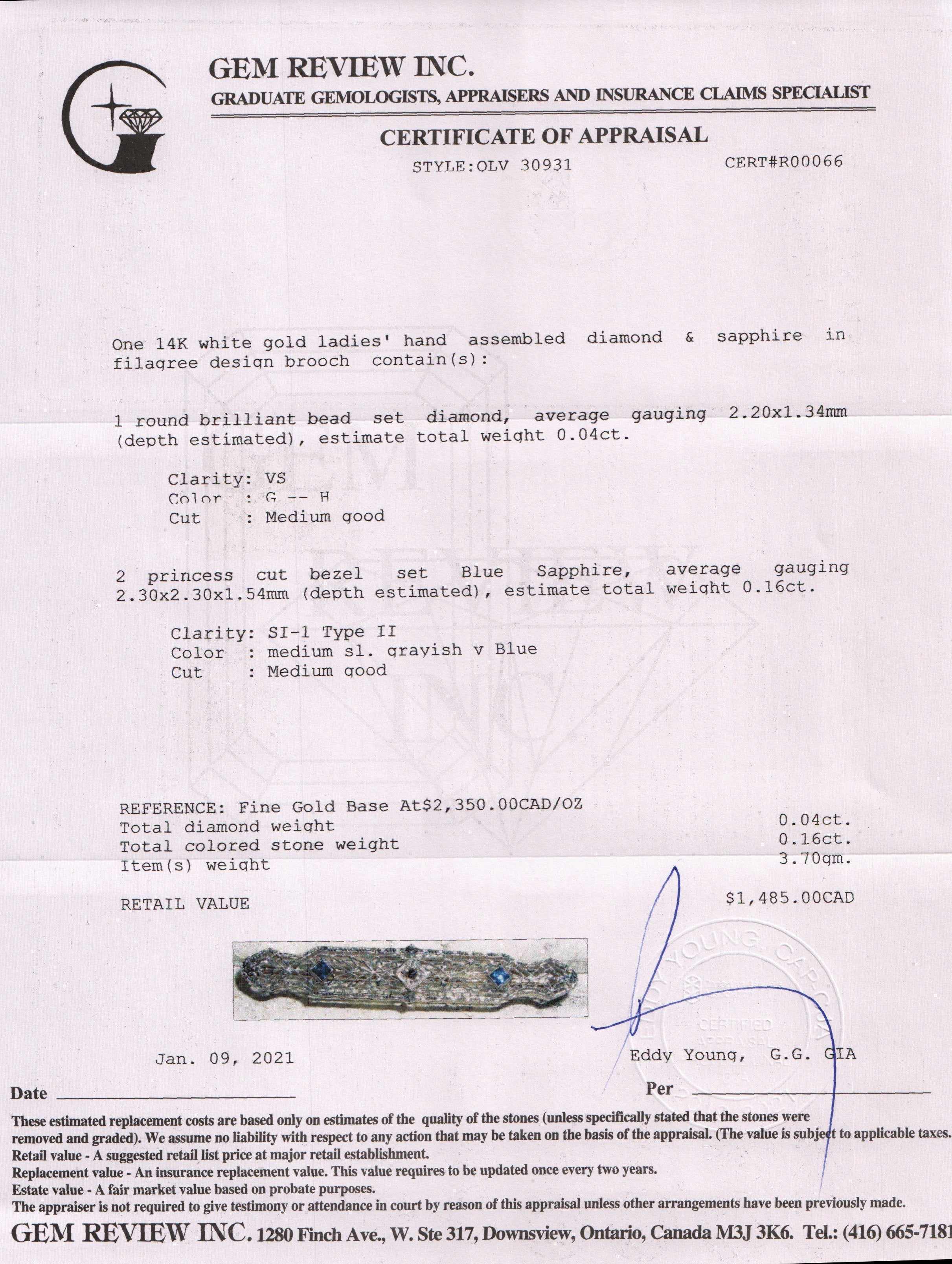 Antique Filigree Sapphire and Diamond Bar Brooch