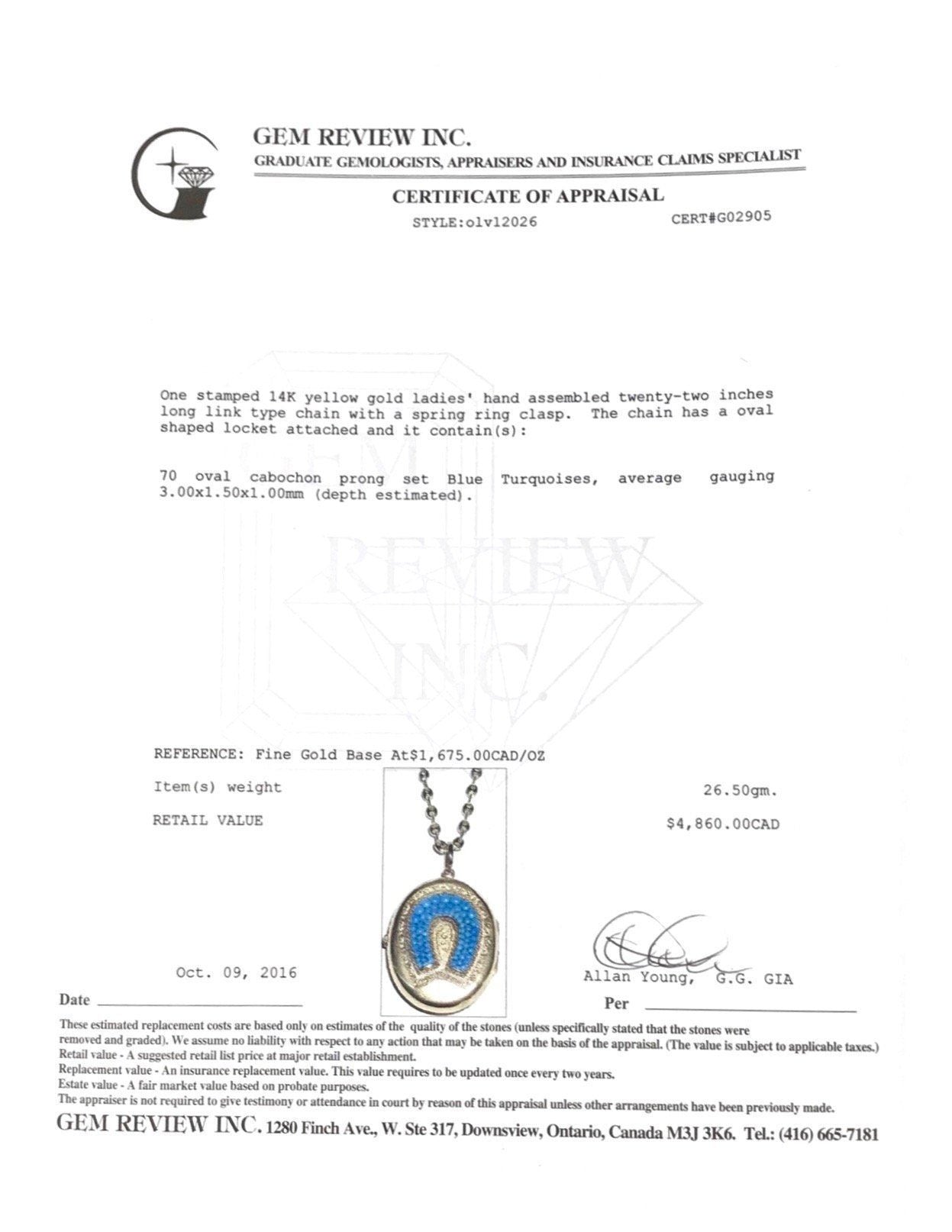 Antique Locket Pendant with Blue Turquoise Beads Gold
