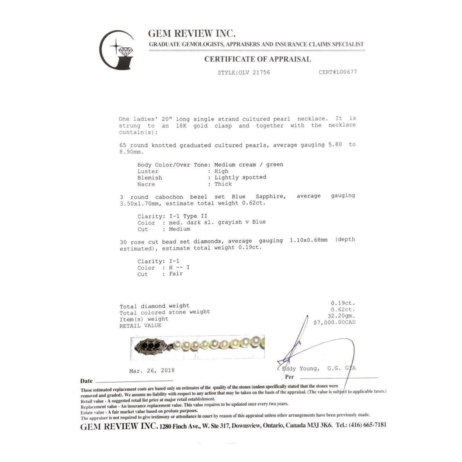 • 65 Round Knotted Cultured Pearls (Average Gauging 5.80 to 8.90mm)
