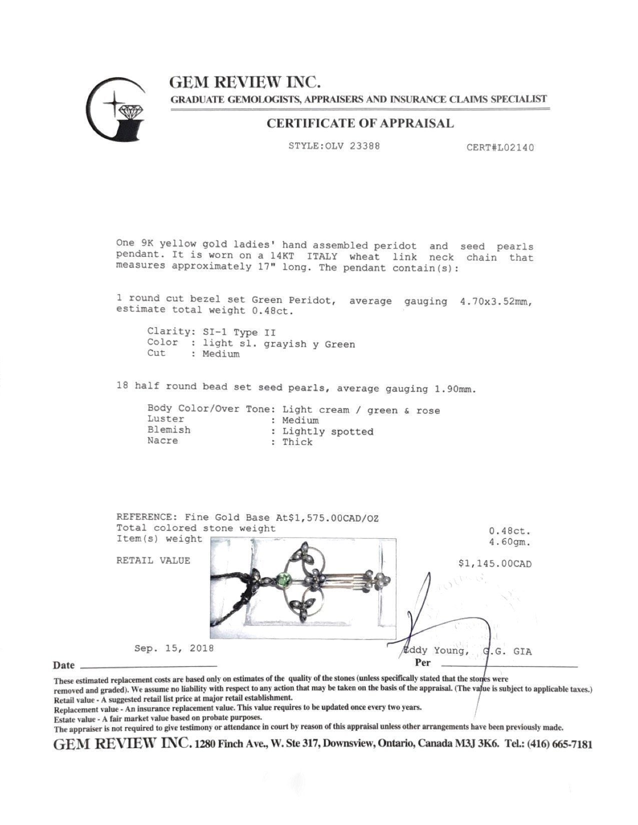 - 1 Round Cut Green Peridot Weighing Approximately 0.48 ct.