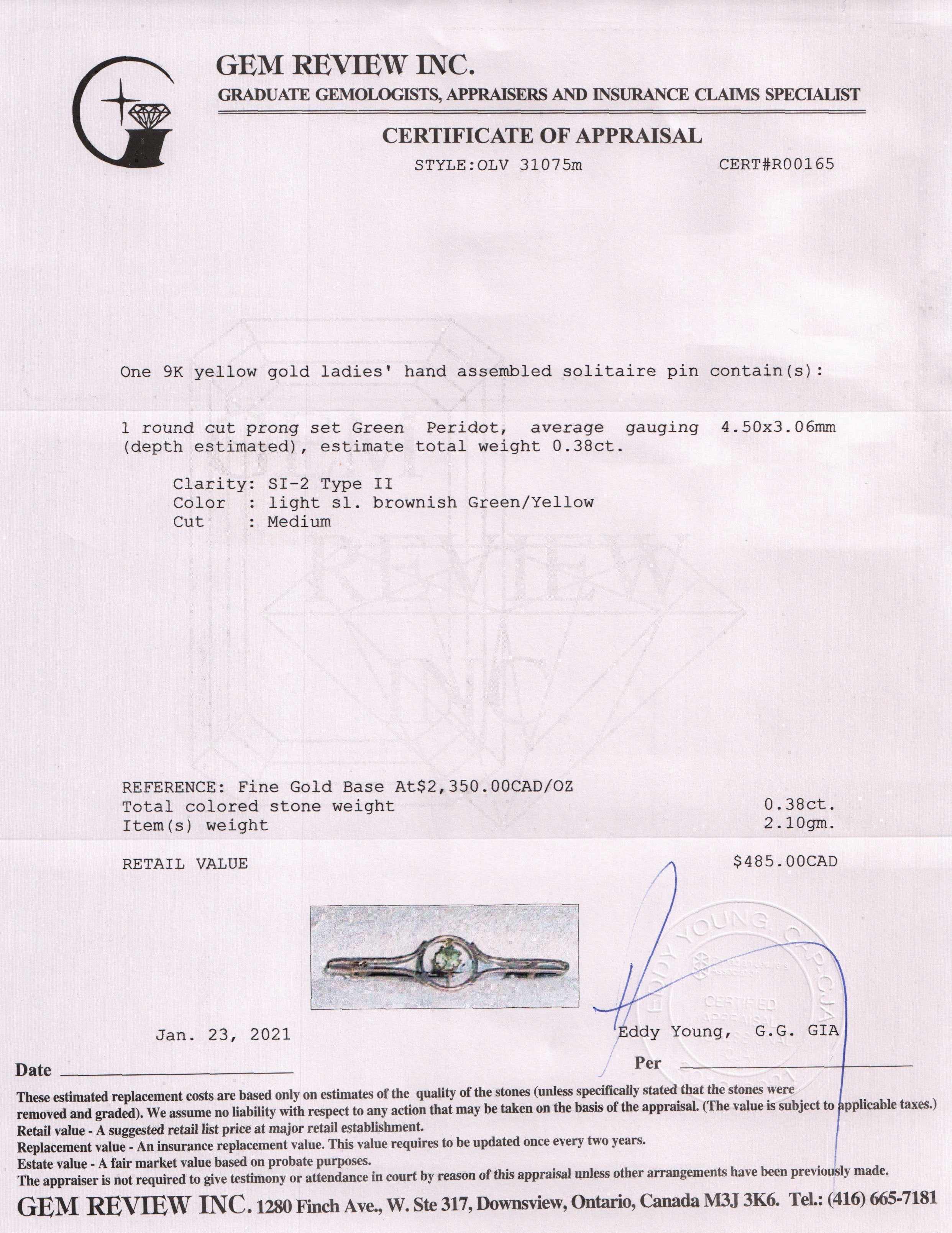 - 1 Round Cut Peridot Weighing Approximately 0.38 ct.