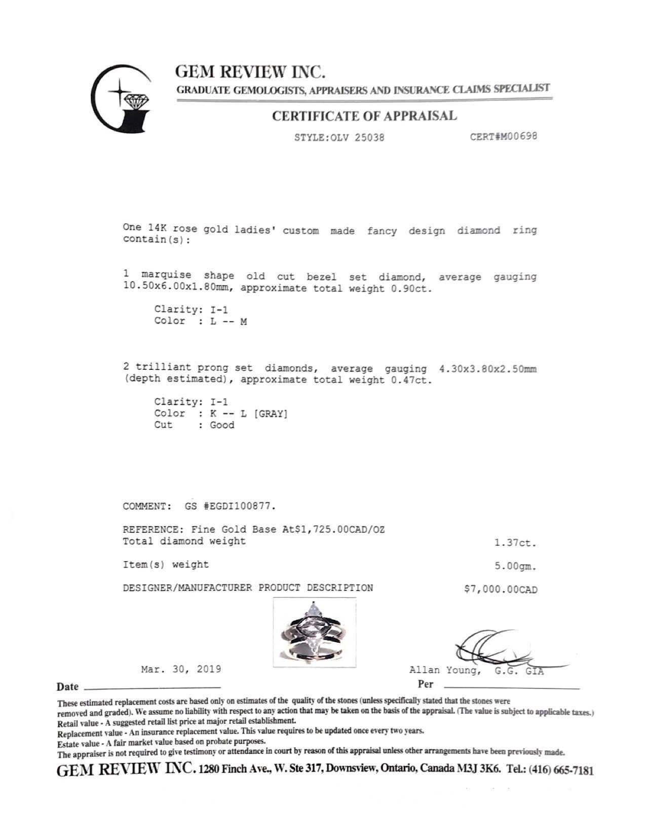 Antique Rose Gold Marquise & Trilliant Cut Diamond Ring