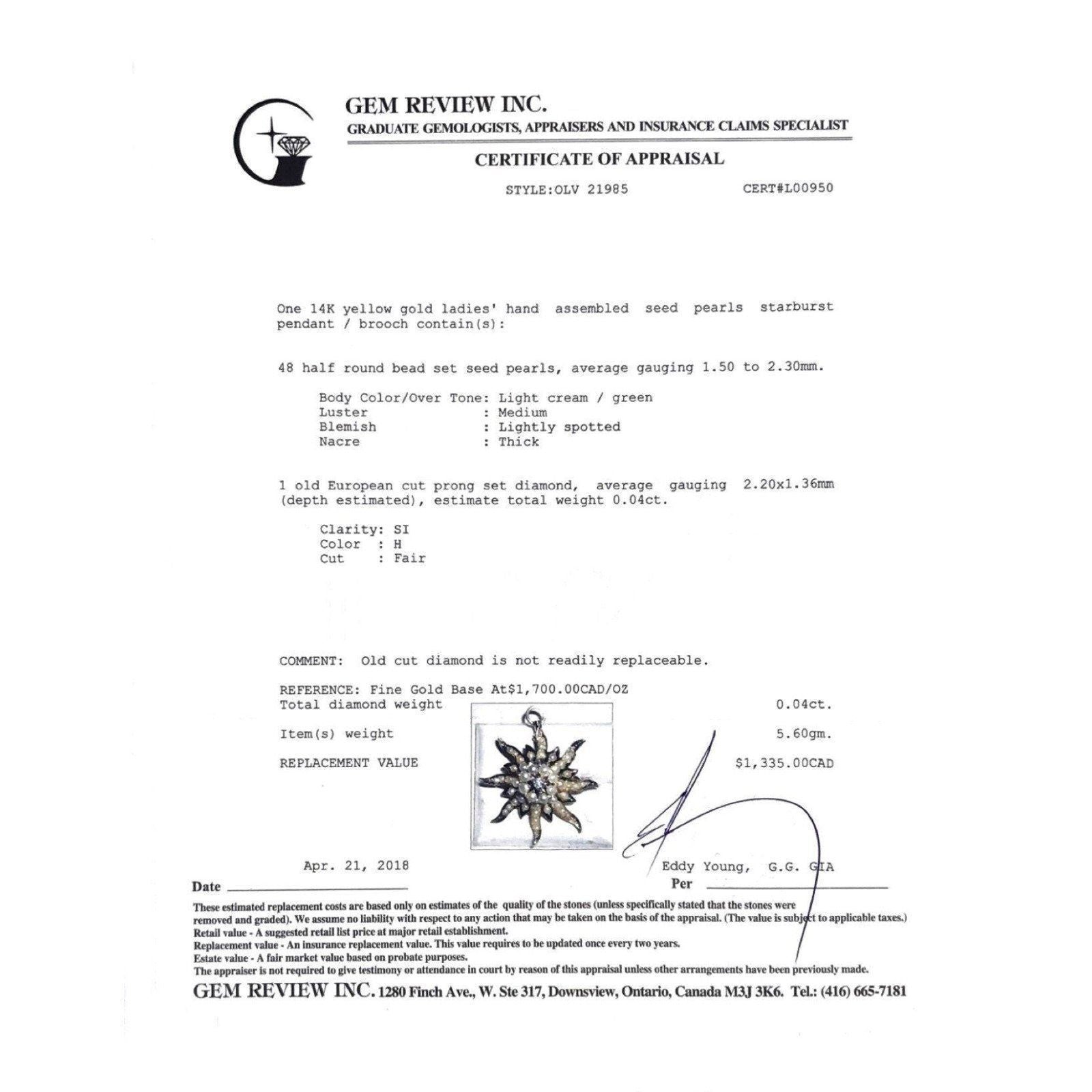 Antique Seed Pearls Starburst Pendant/ Brooch in 14K Yellow Gold