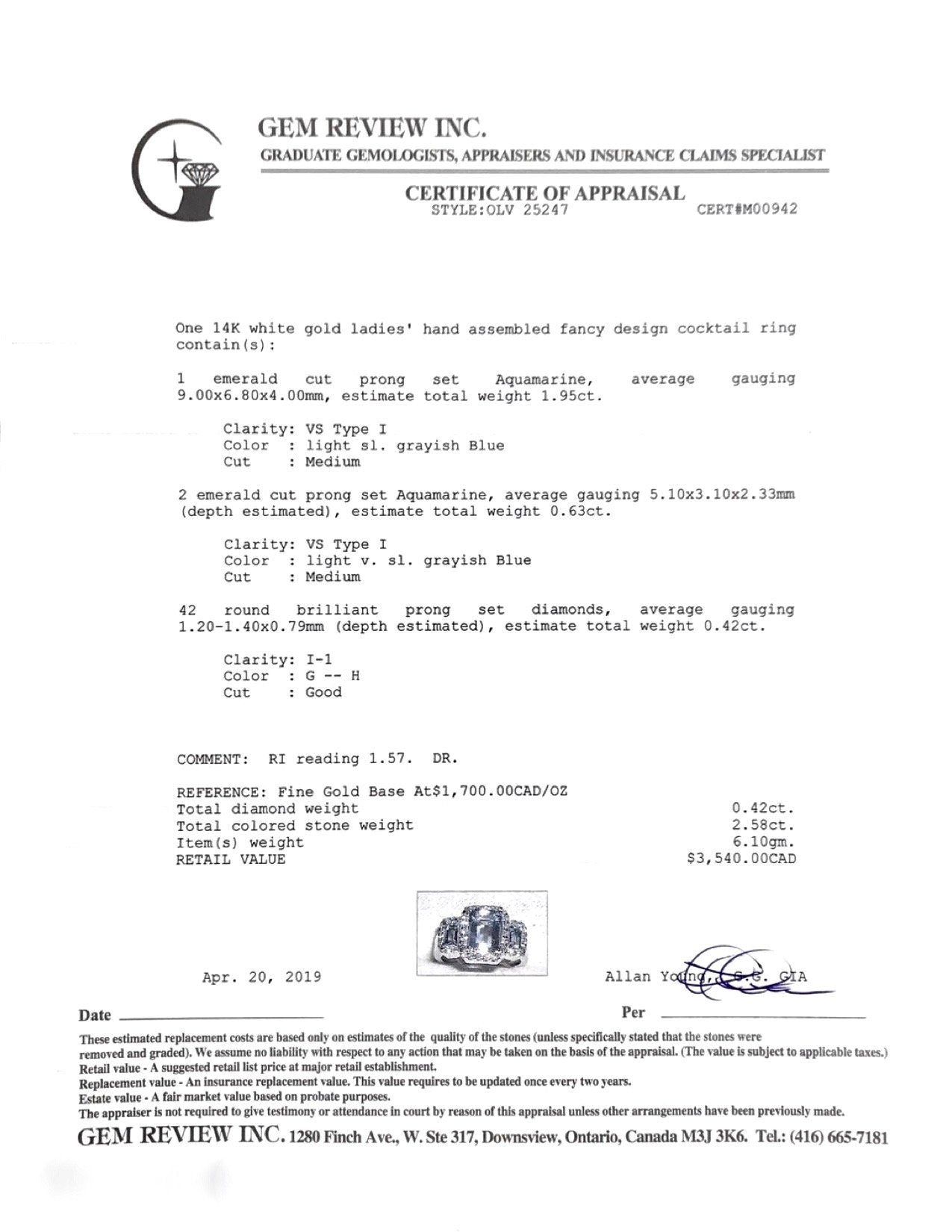 - 1 Emerald Cut Aquamarine Weighing Approximately 1.95 ct.