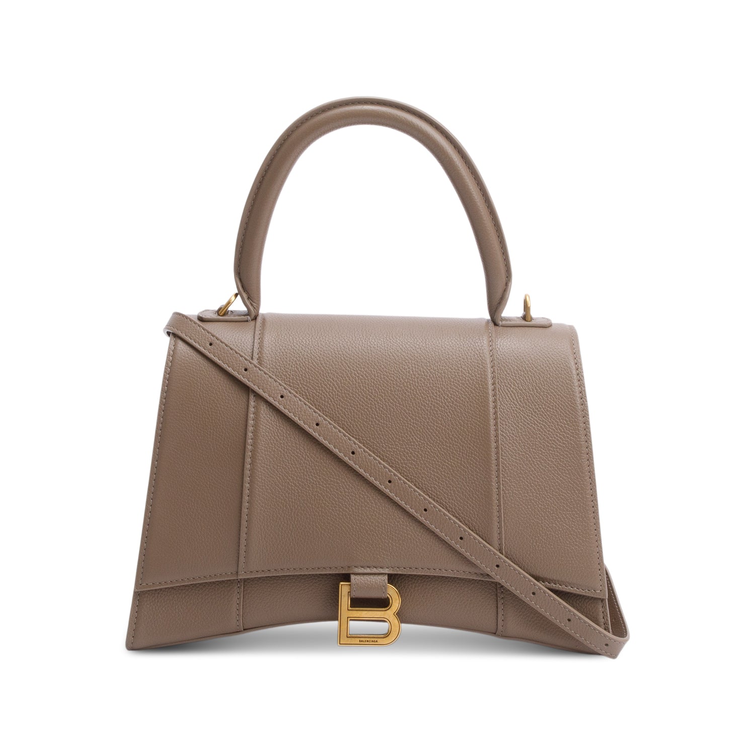 Beige Grained Leather Medium Hourglass Top Handle Bag w/ Strap