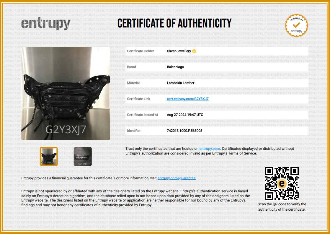 Dust Bag, Entrupy Certificate of Authenticity