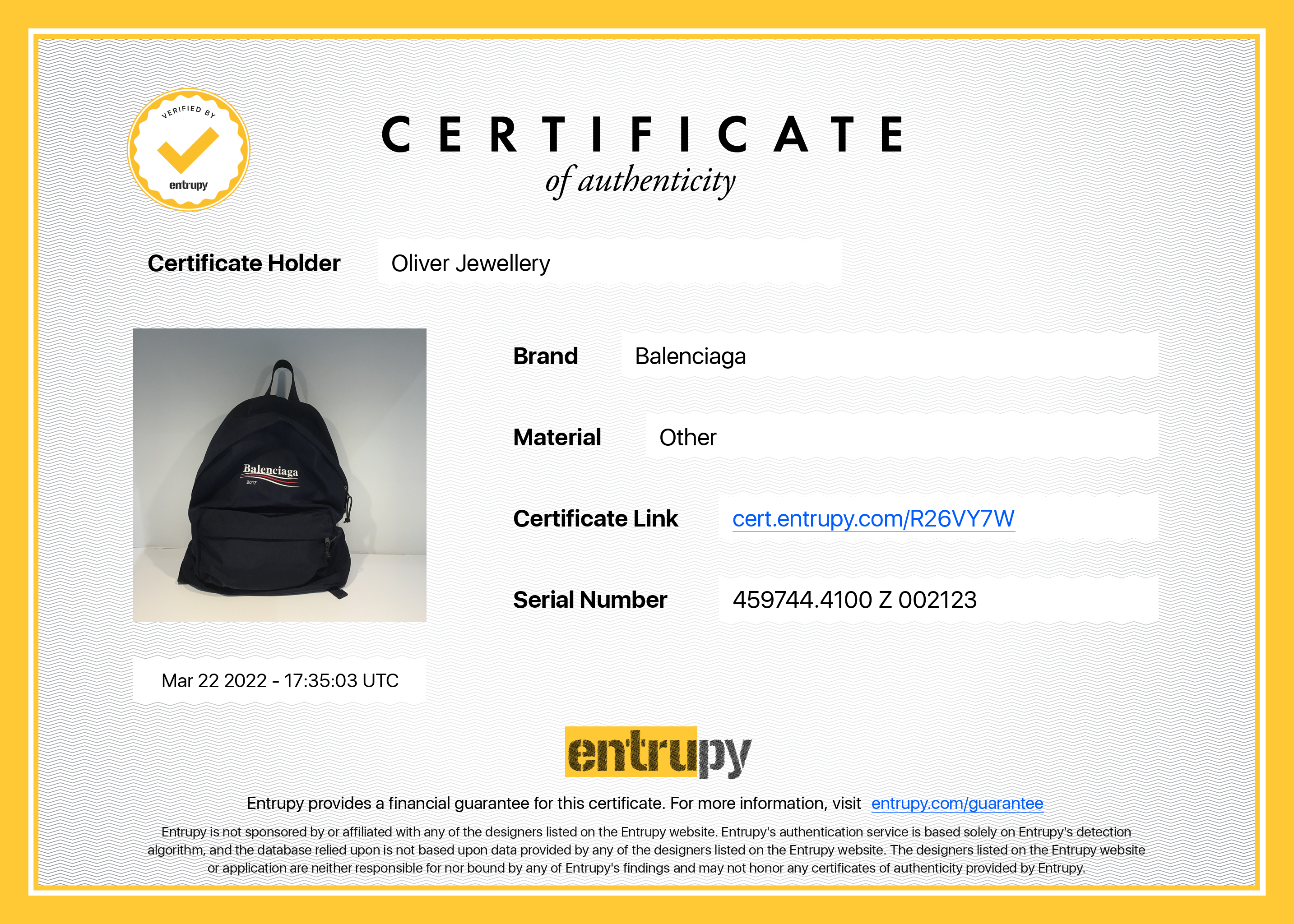 Included Items: Entrupy Certificate of Authenticity #: R26VY7W