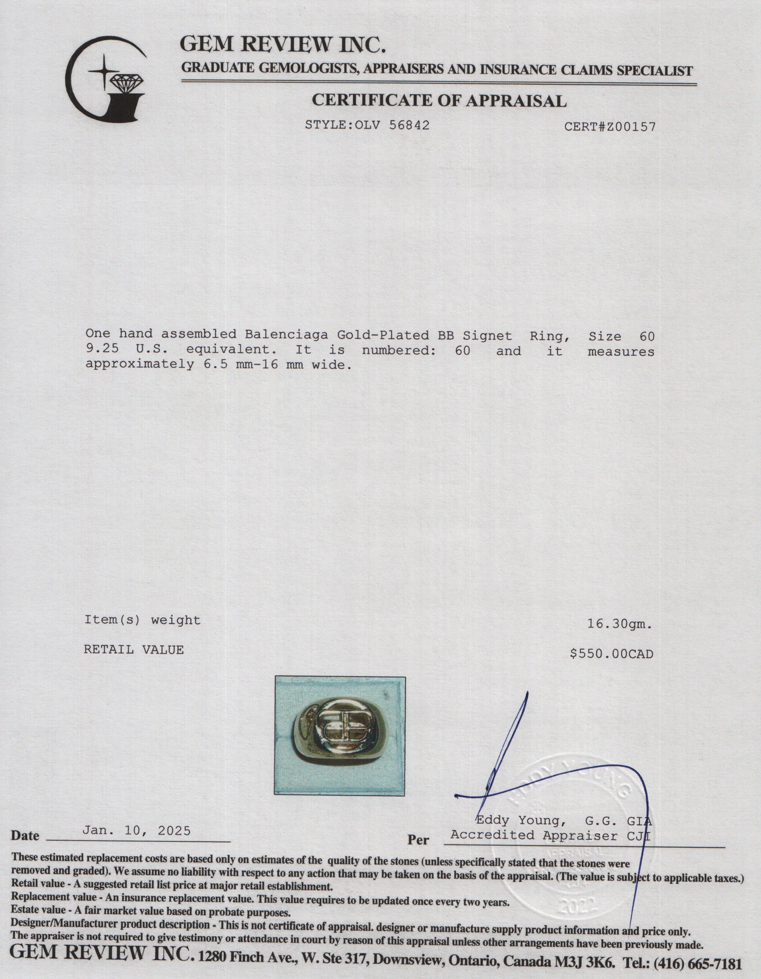 Gold-Plated BB Signet Ring, Size 60 9.25