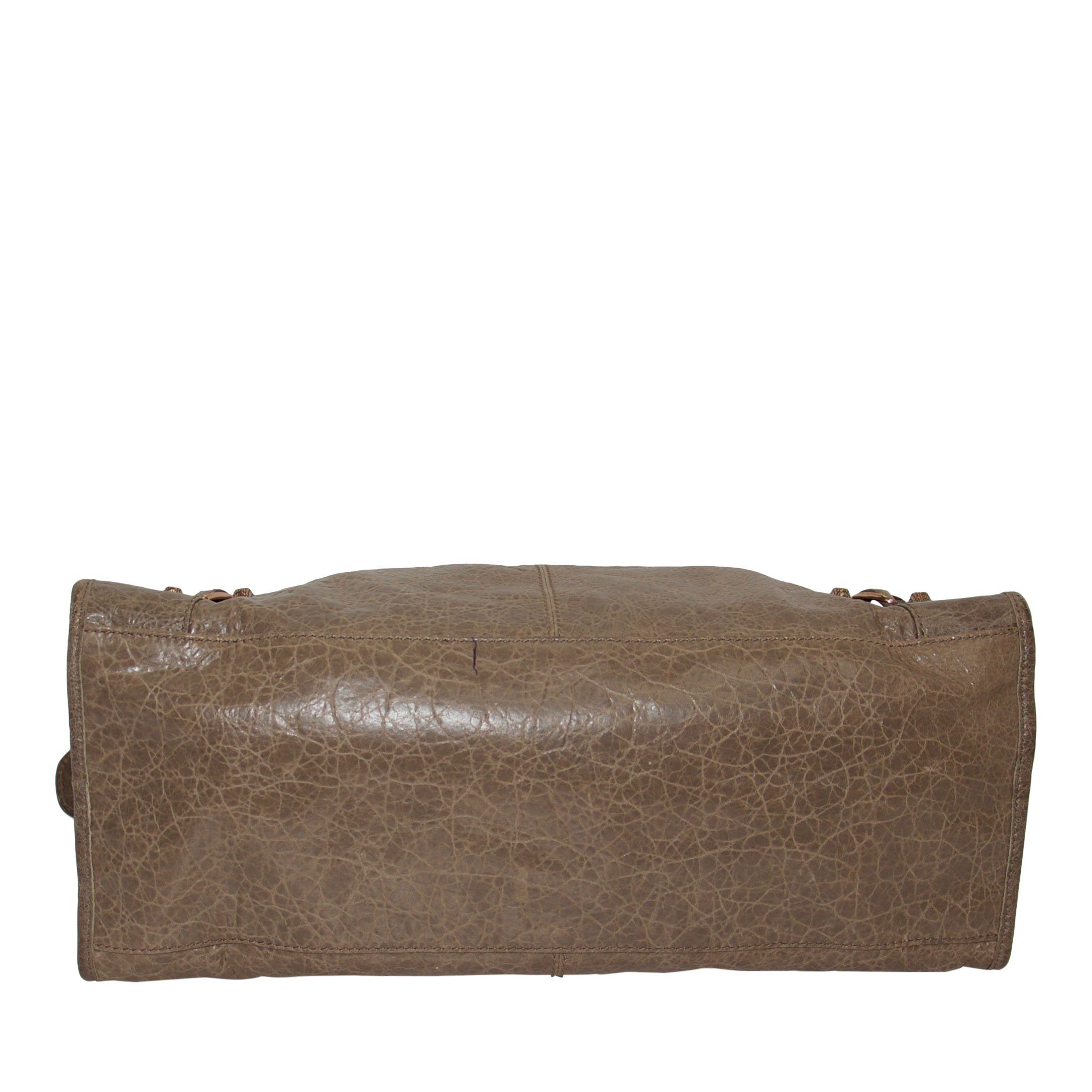 Condition: Good; slight surface scratches at hardware; some scuffing along exterior edges; pen mark at exterior base; slight wear at top handles; slight residue at interior