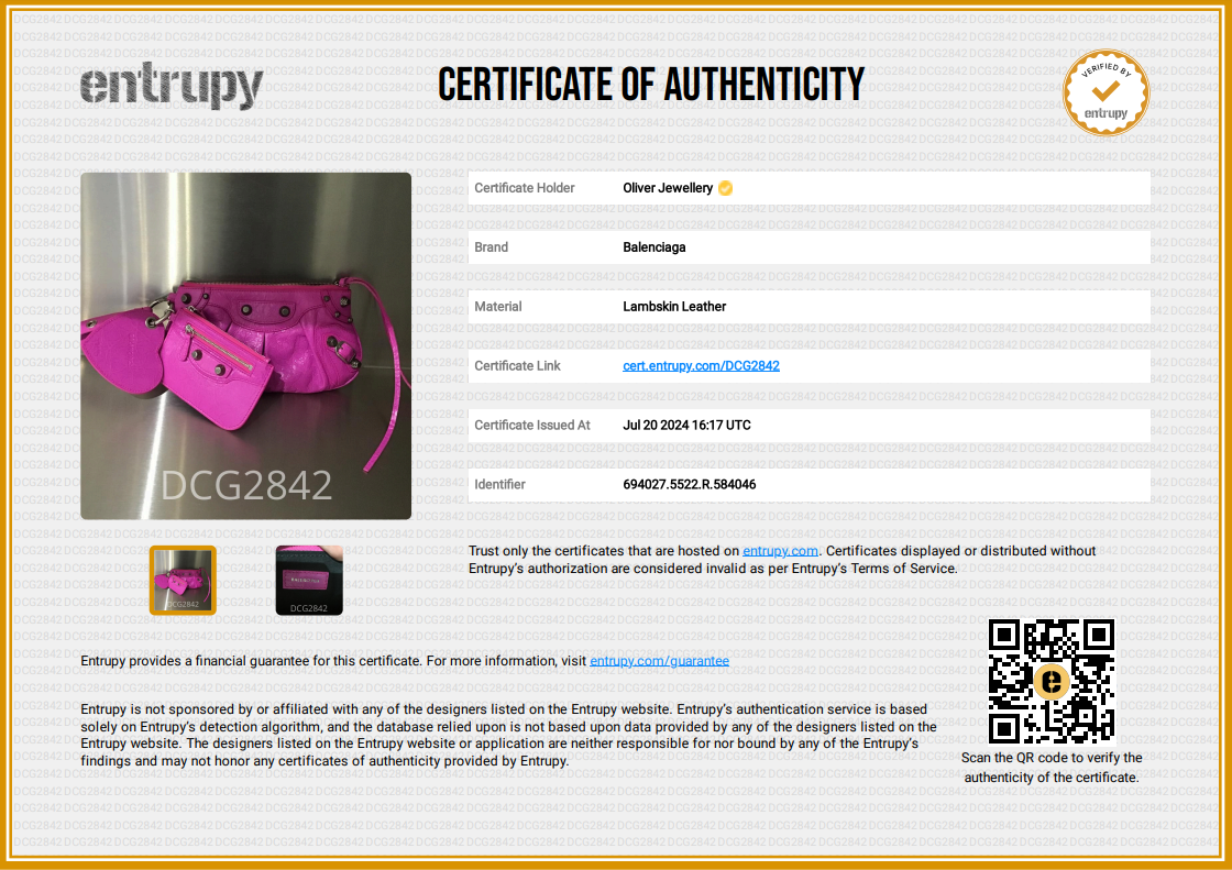 Dust Bag, Removeable Heart Mirror, Removeable Pouch, Wristlet Strap, Entrupy Certificate of Authenticity