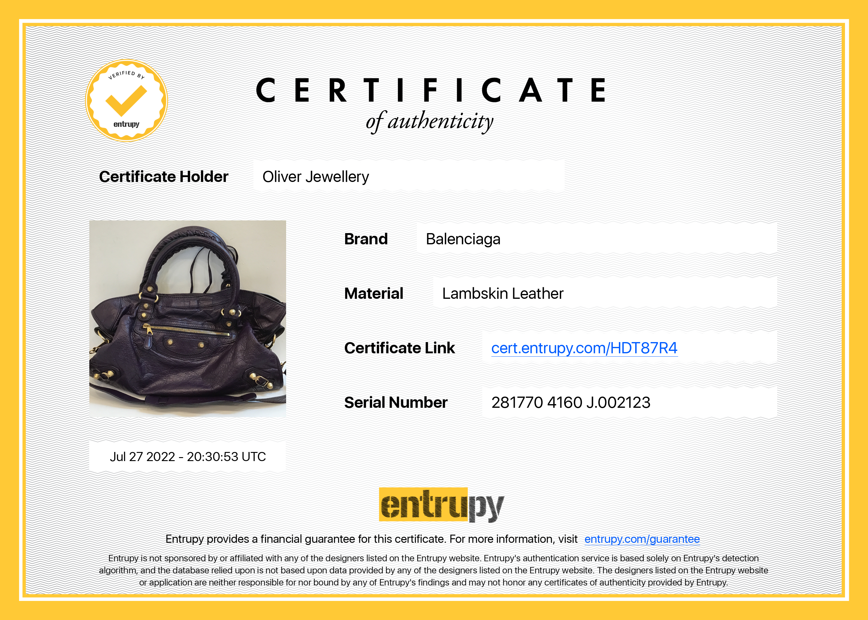 Included Items: Original Balenciaga Dust Bag, Detachable Compact Mirror and Entrupy Certificate of Authenticity #: HDT87R4