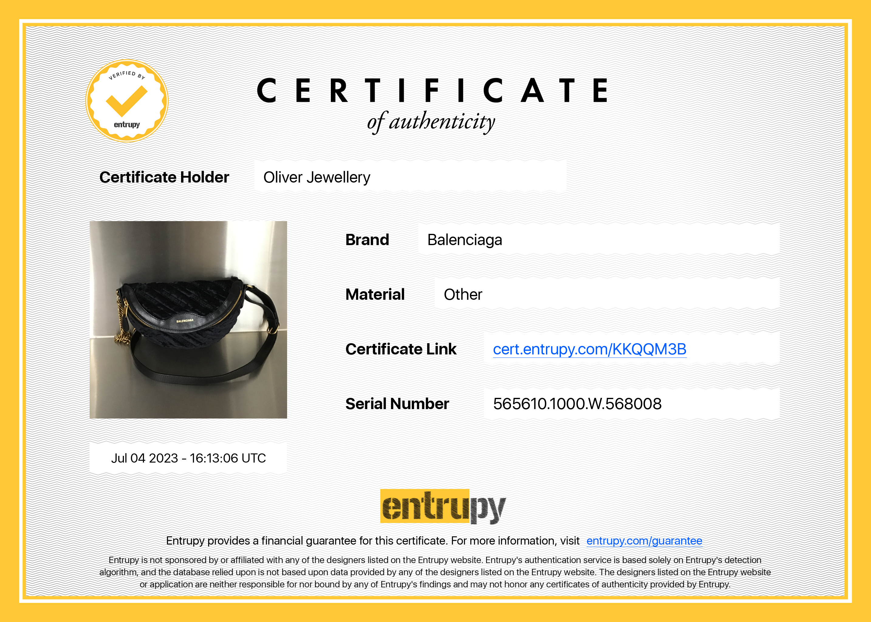 Included Items: Original Balenciaga Dust Bag and Entrupy Certificate of Authenticity #: KKQQM3B