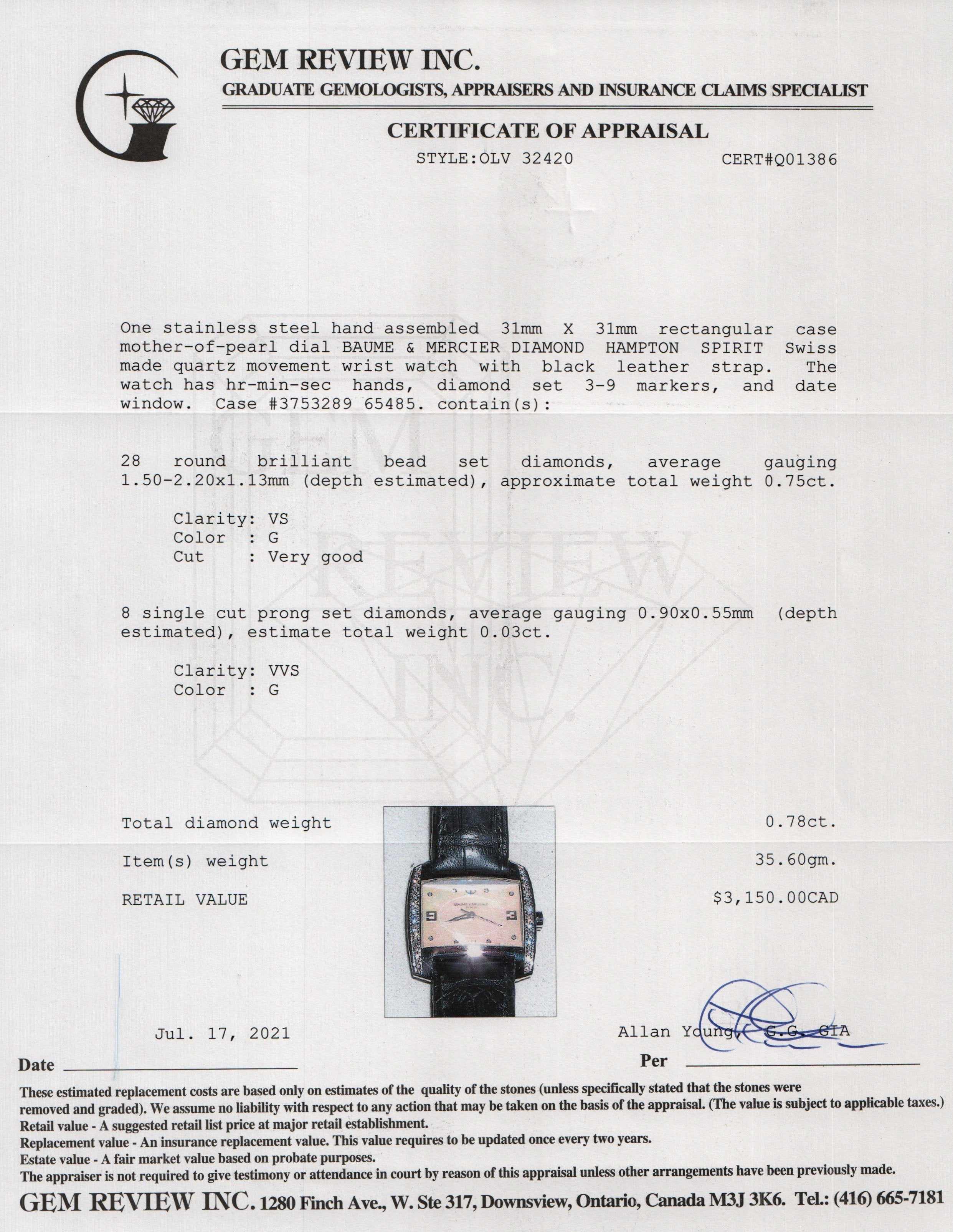 Included Items: Gem Review Appraisal