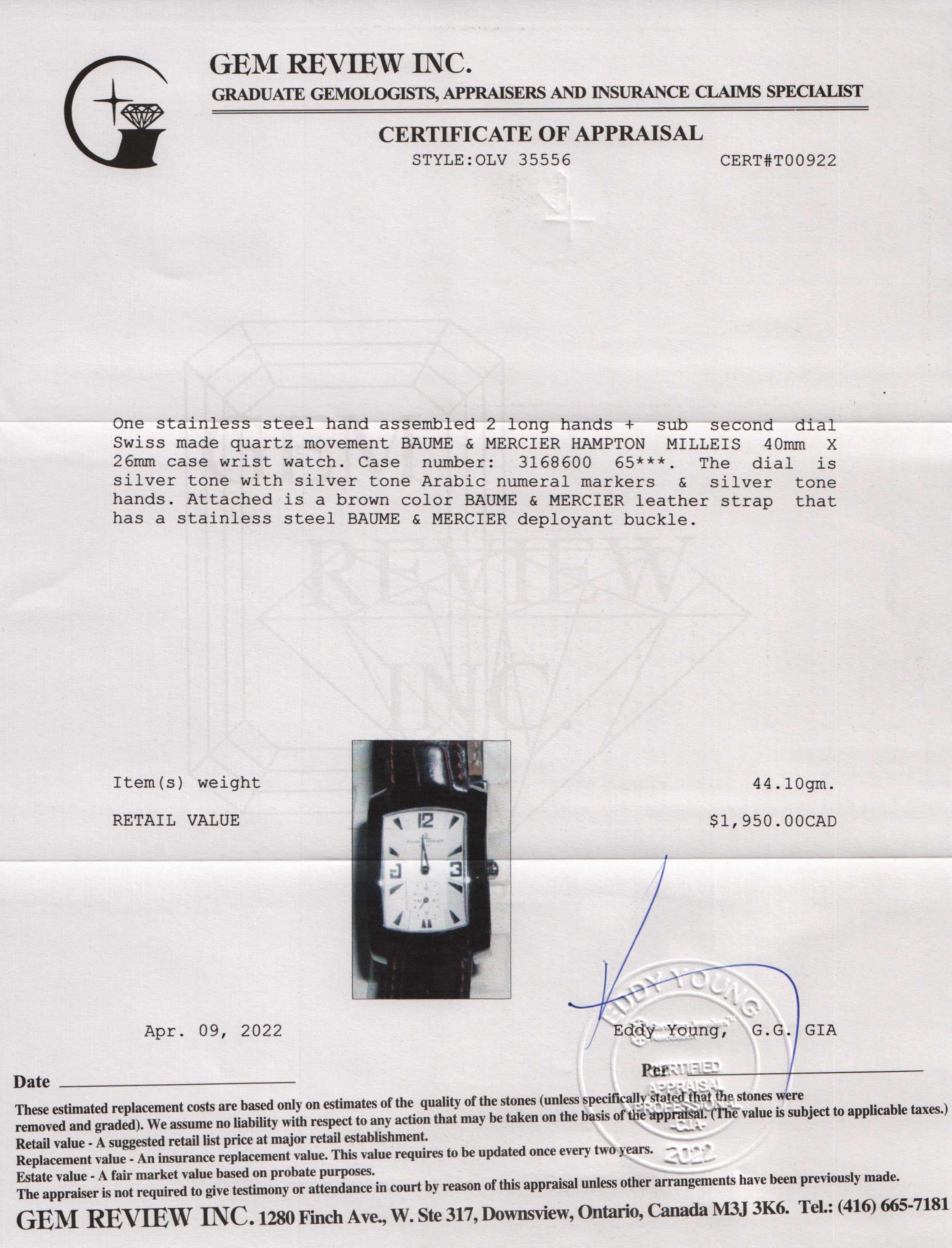 Included Items: Original Baume & Mercier Box & Gem Review Appraisal