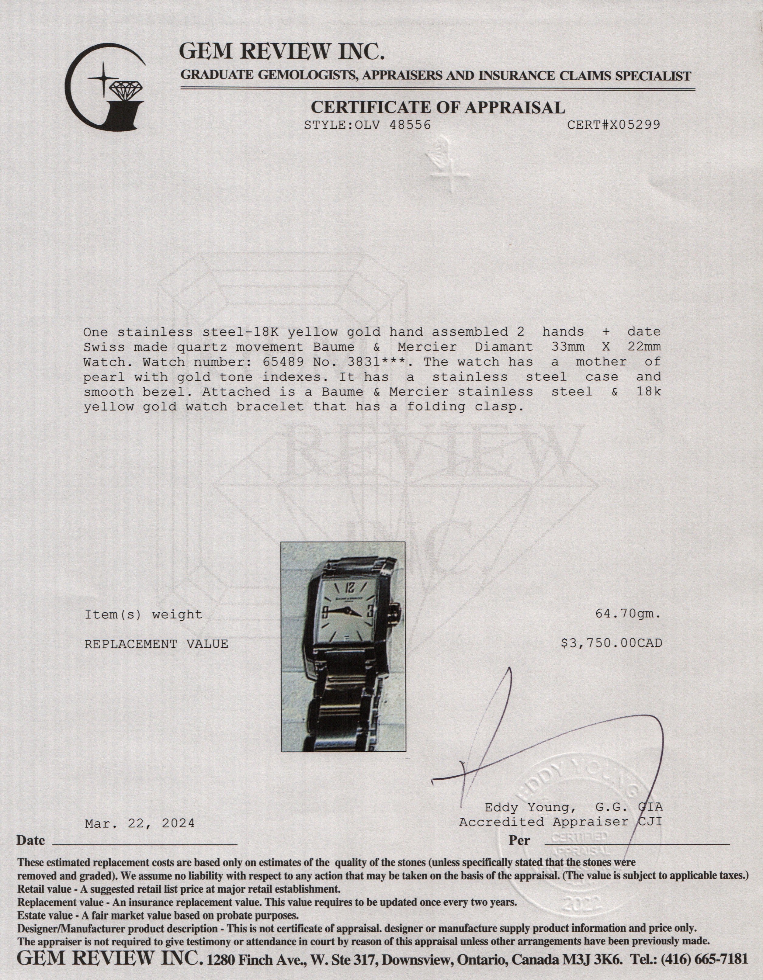 Stainless Steel & 18k Yellow Gold Mother Of Pearl Diamant Watch w/ Box