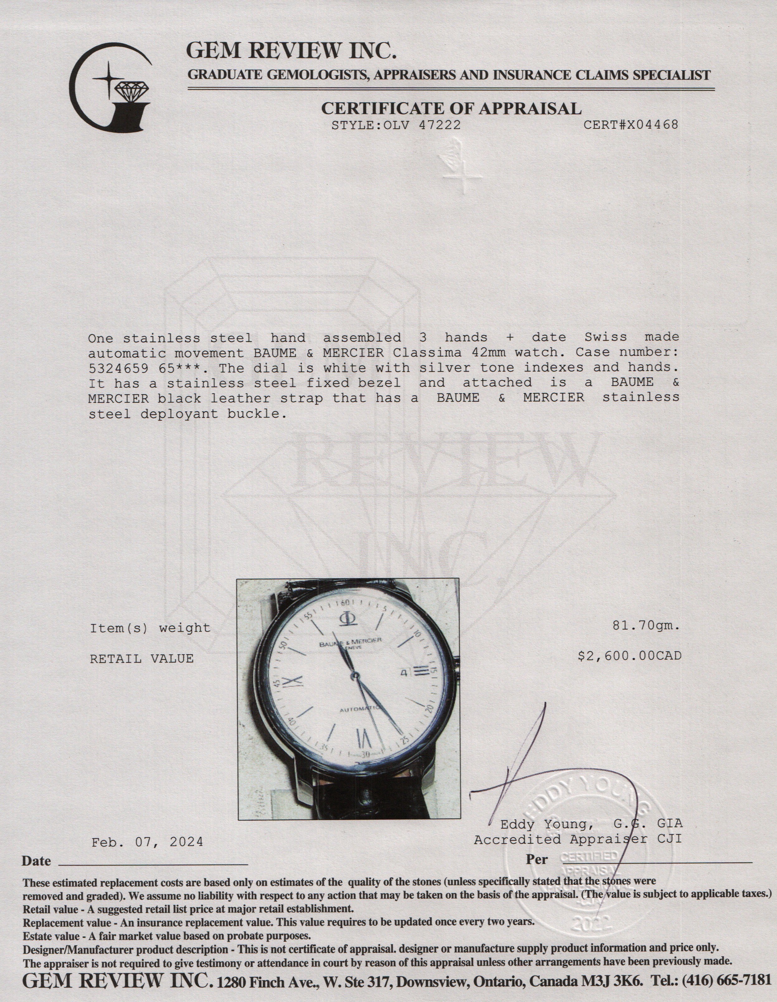 Stainless Steel Classima 42 MM Automatic Watch w/ Box