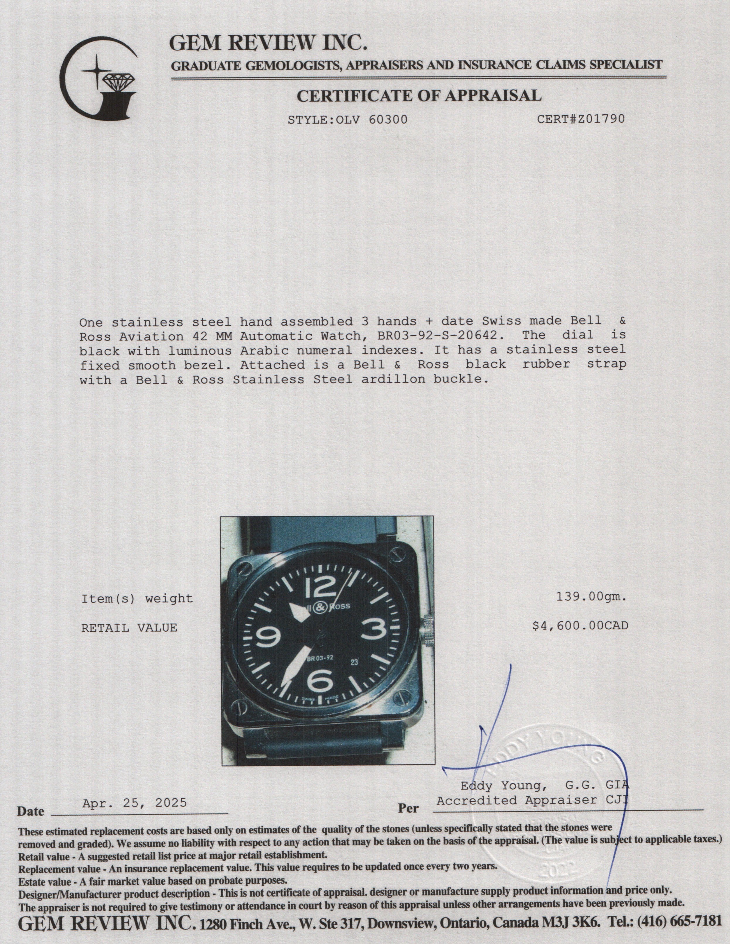Est. Retail $4,600