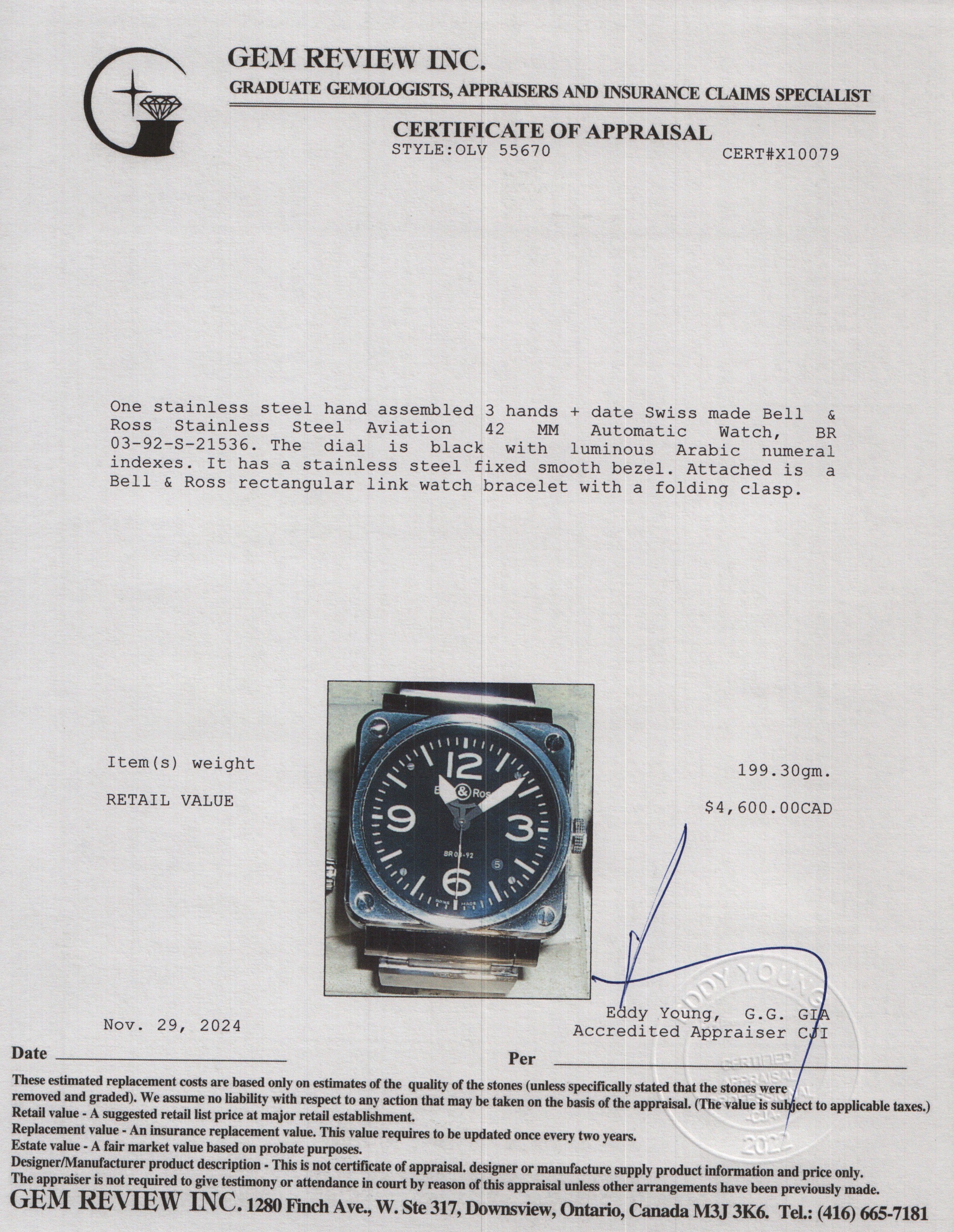 Stainless Steel Aviation BR 03-92 42 MM Automatic Watch