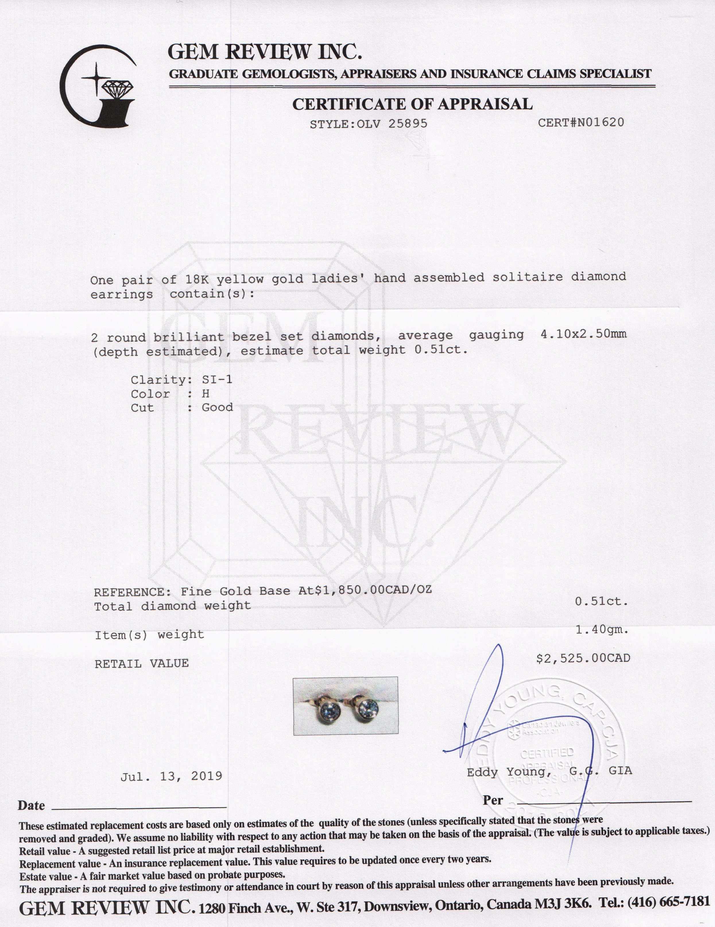 - 2 Round Brilliant Cut Diamonds Totalling Approximately 0.51 ct. of SI1 Clarity, H Colour, Good Cut