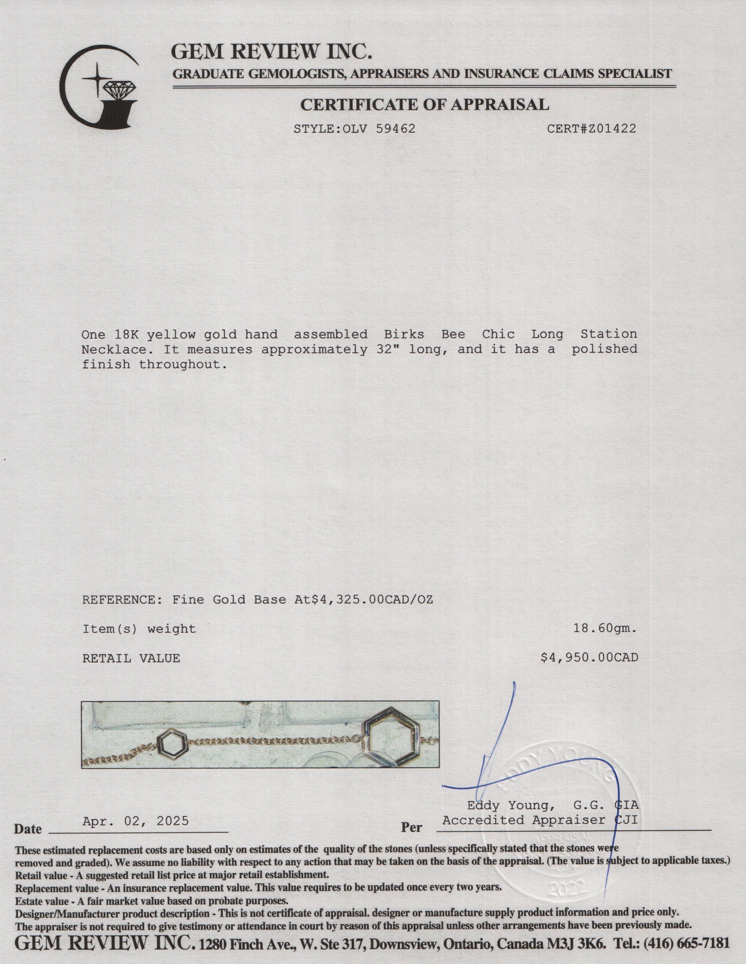 18k Yellow Gold Bee Chic Long Station Necklace w/ Box