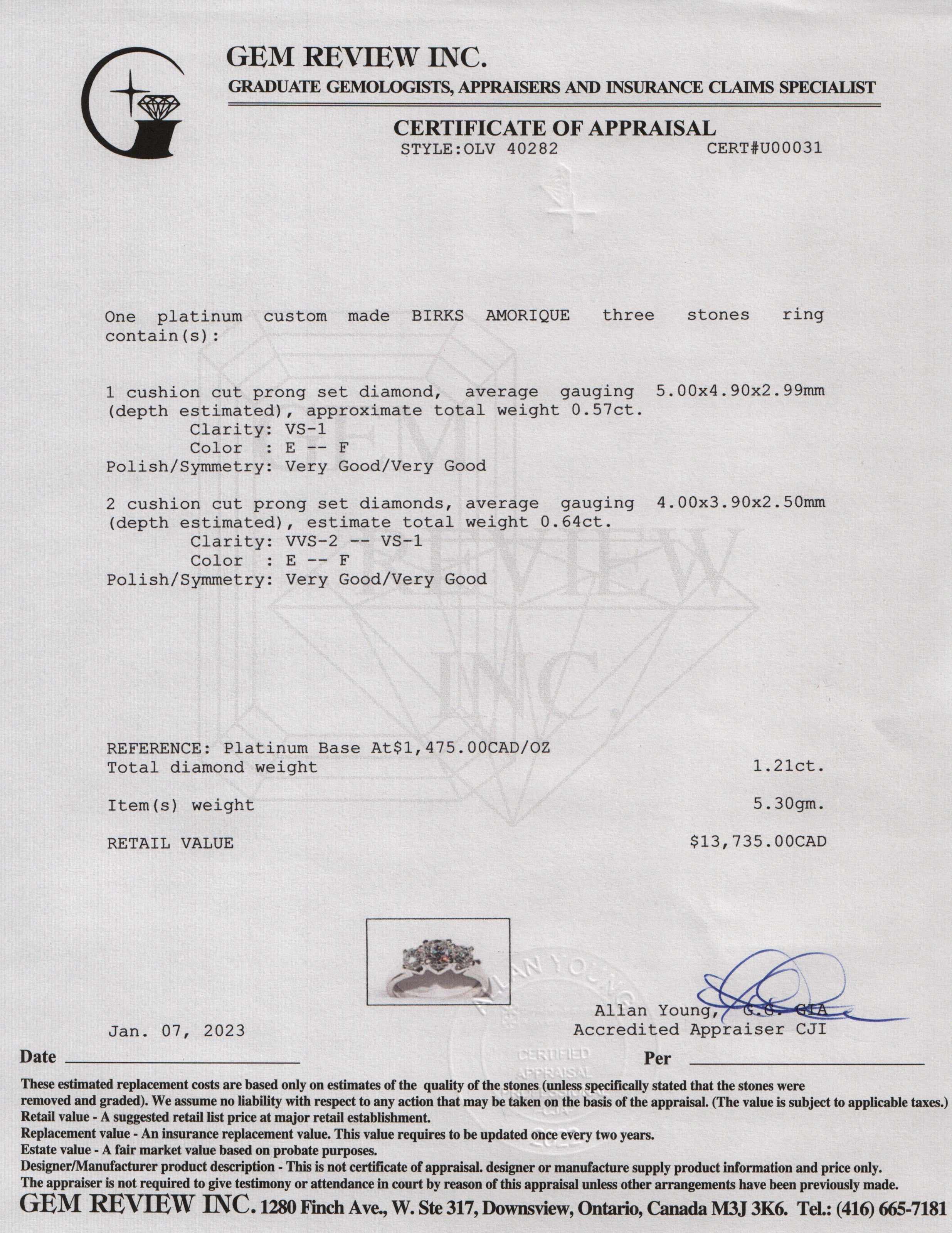 - Signature/Hallmark: BIRKS AMORIQUE PT950 0.57