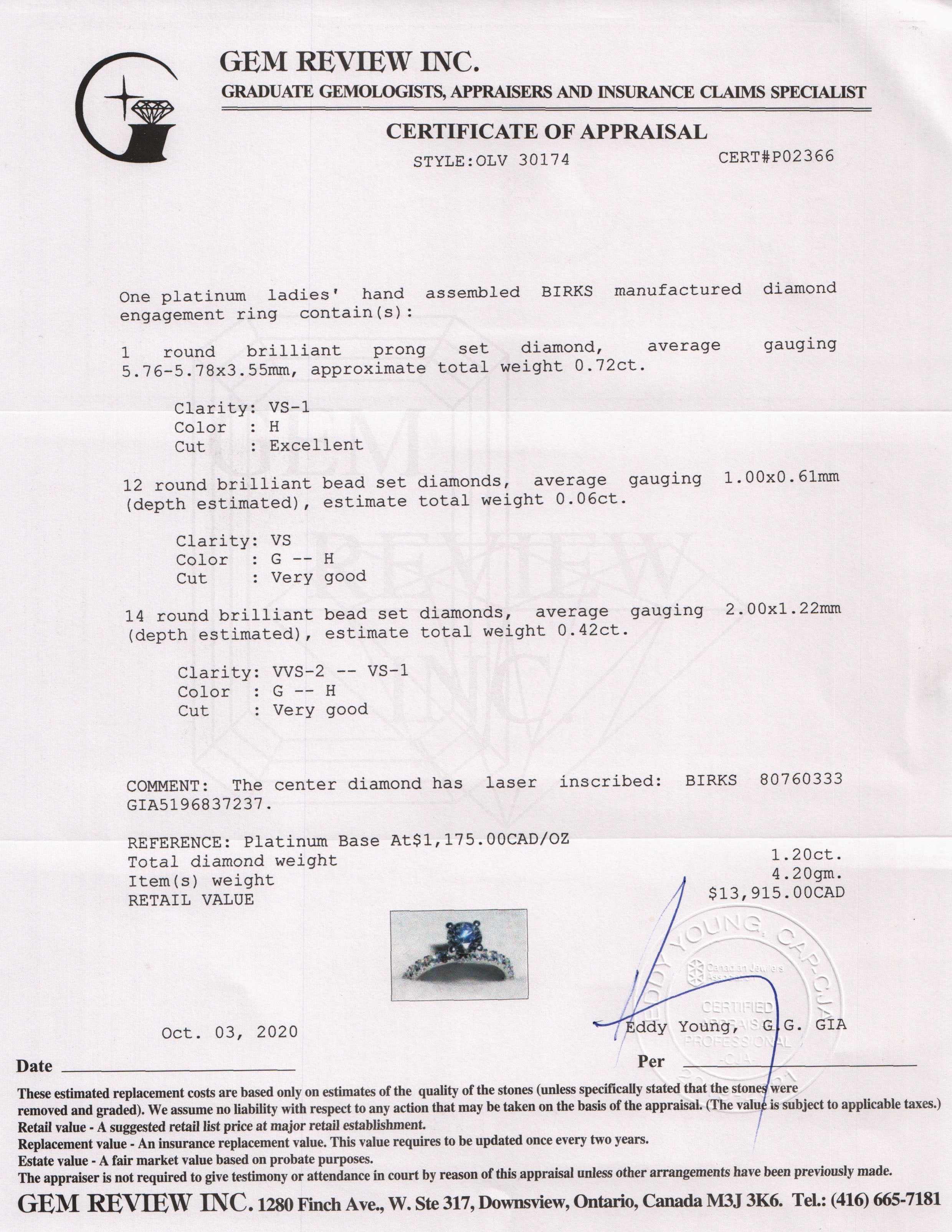 Included Items: Original Birks Diamond Certificate, GIA Diamond Certificate and Gem Review Appraisal