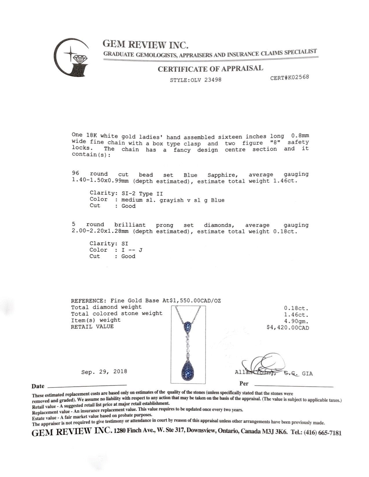 Blue Sapphire and Diamond Drop Pendant Necklace