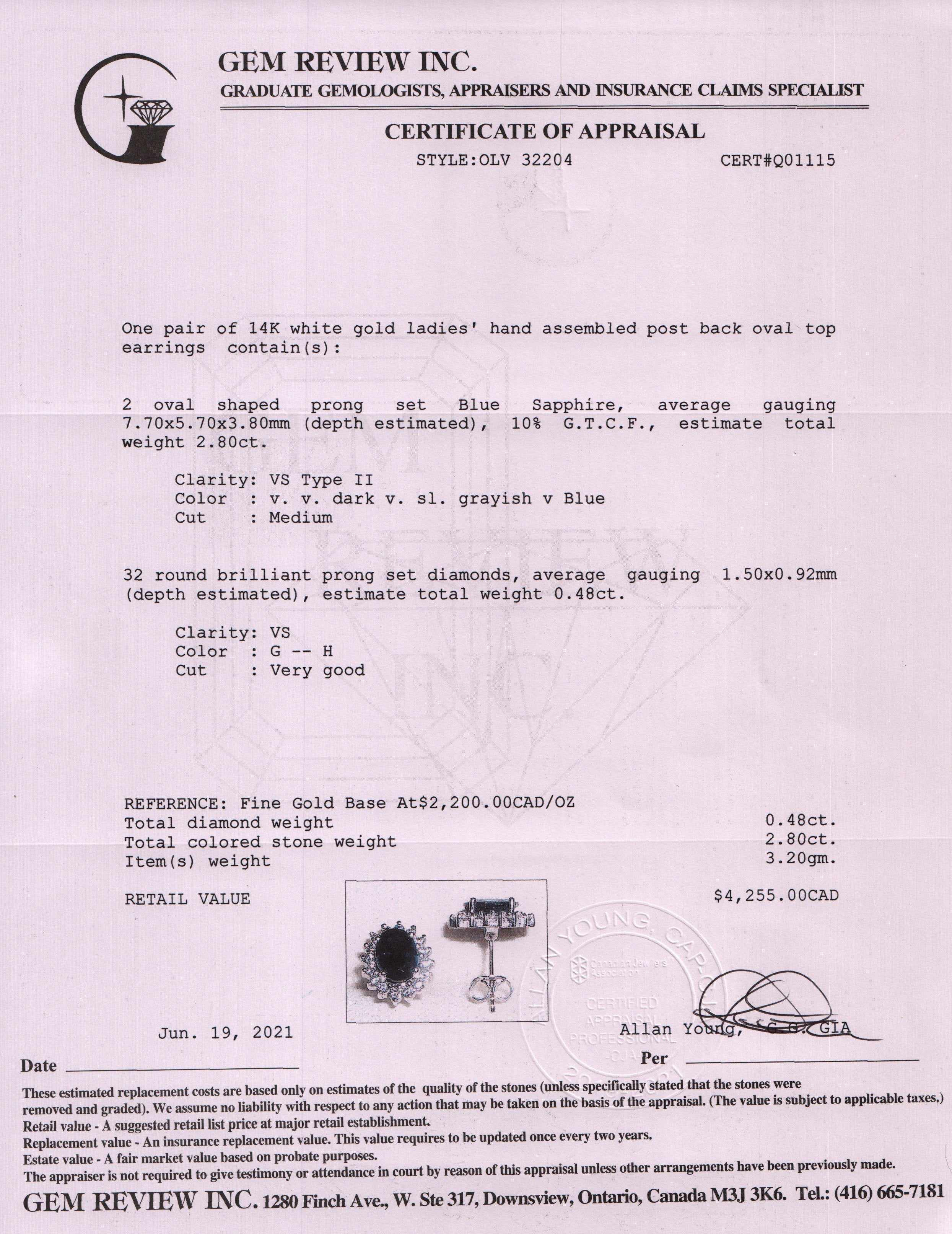 - 2 Oval Shaped Blue Sapphires Totalling Approximately 2.80 ct.