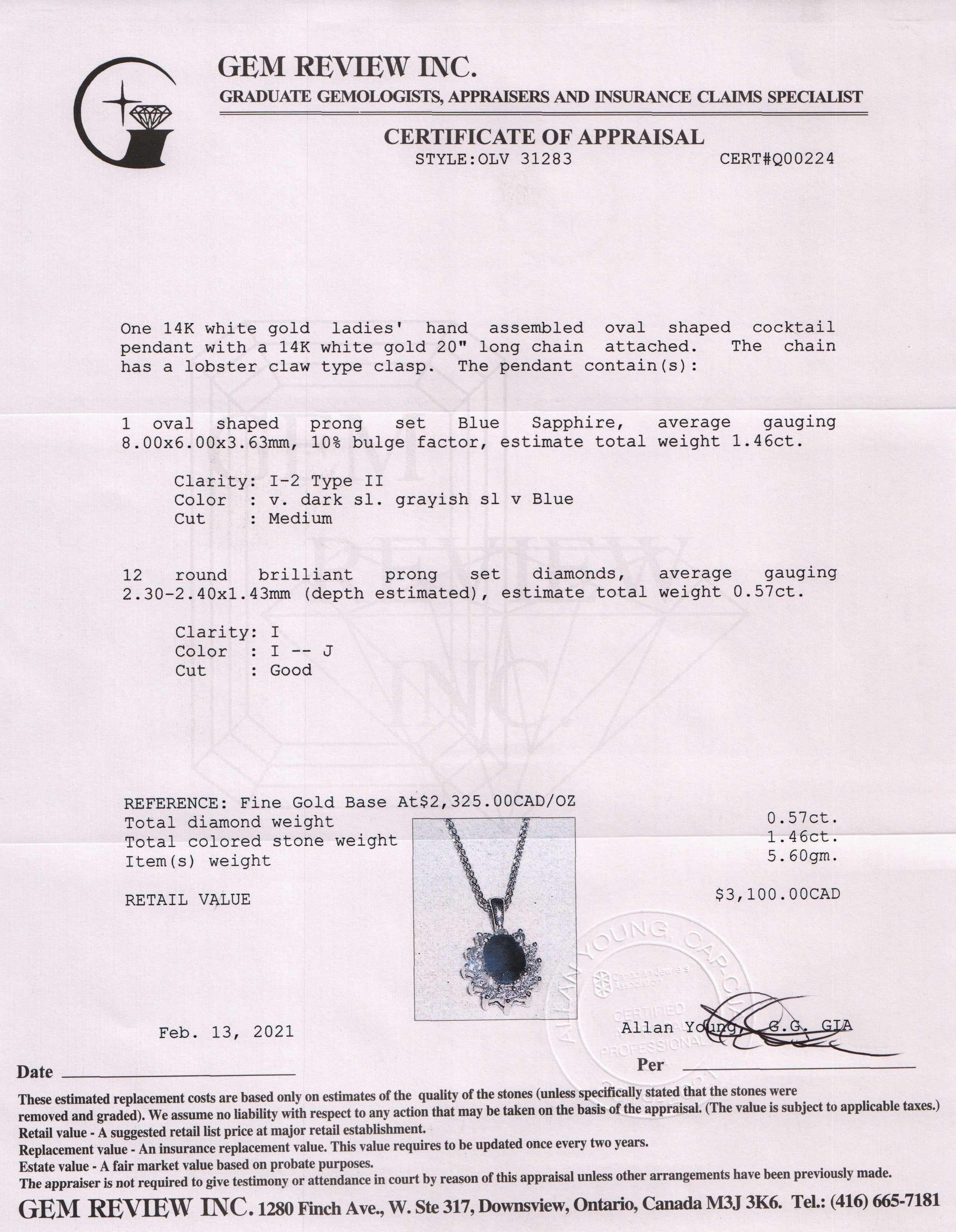 - 1 Oval Shaped Blue Sapphire Weighing Approximately 1.46 ct.