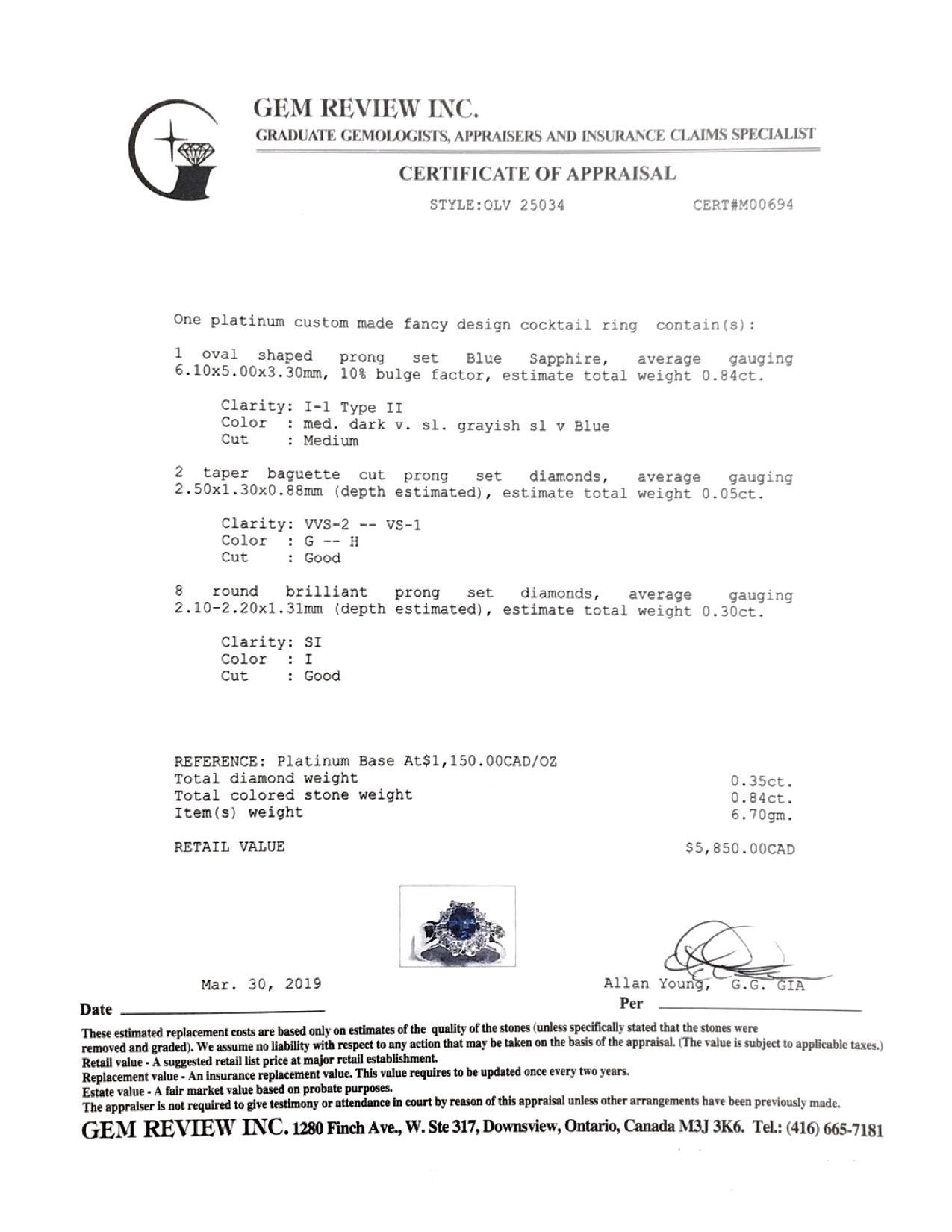 - 1 Oval Shaped Blue Sapphire Weighing Approximately 0.84 ct.