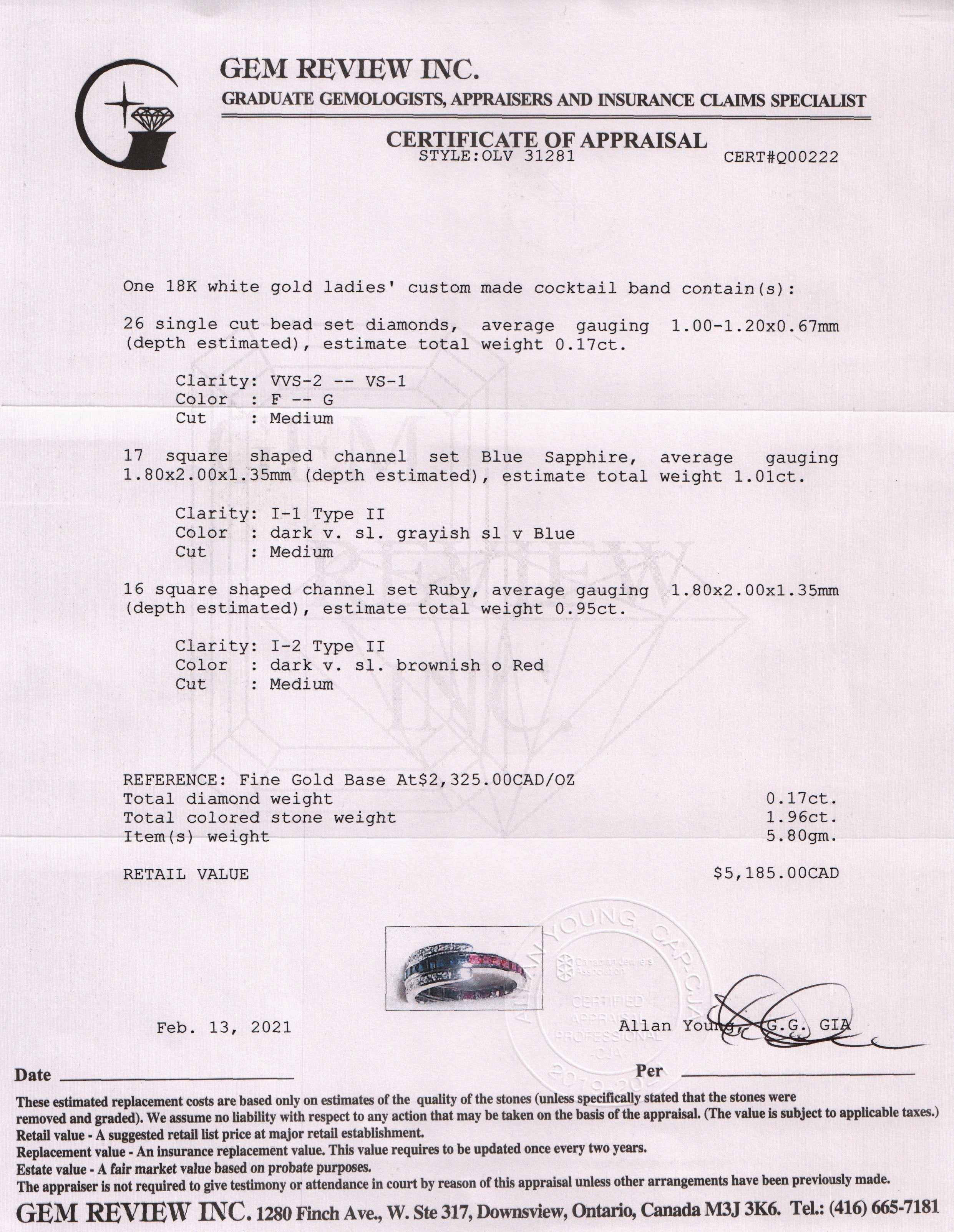 Blue Sapphire, Ruby, and Diamond Cocktail Ring