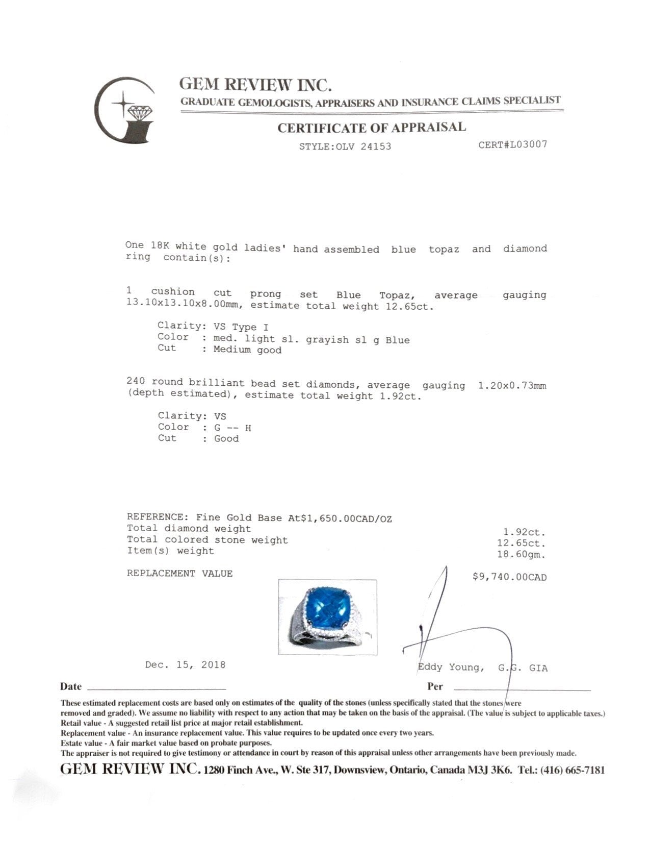 - 1 Cushion Cut Blue Topaz Weighing Approximately 12.65 ct.