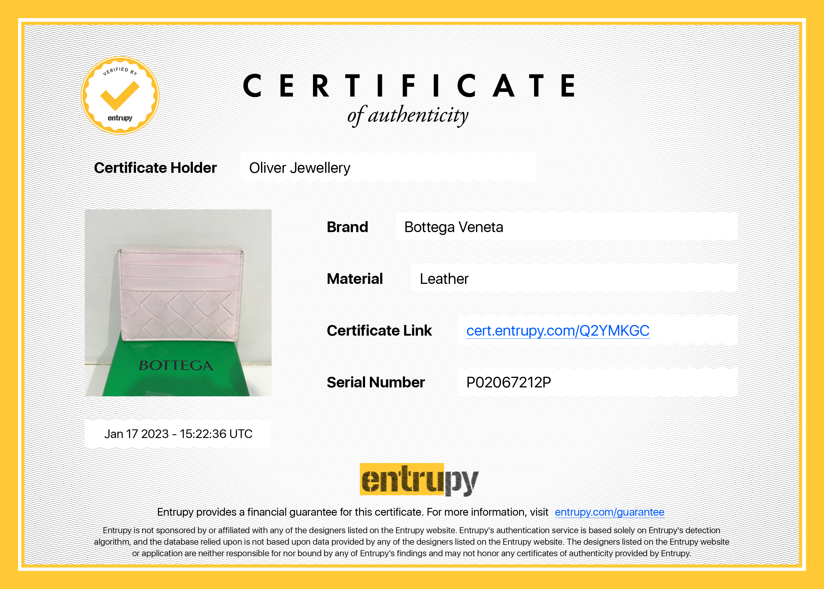 Included Items: Original Bottega Box, Dust Bag, Booklet & Entrupy Certificate of Authenticity #: Q2YMKGC