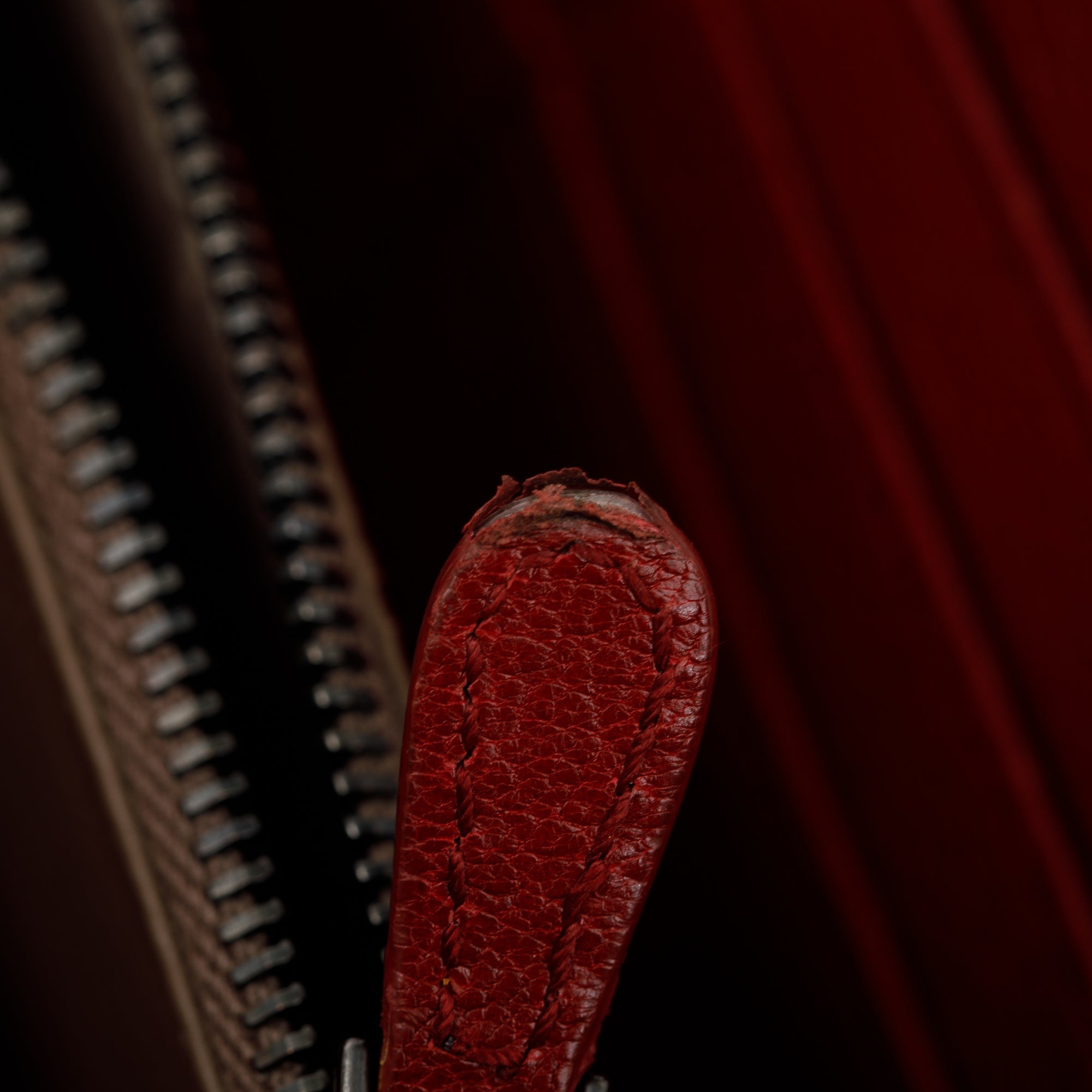 Red Intrecciato Leather Zip Around Wallet