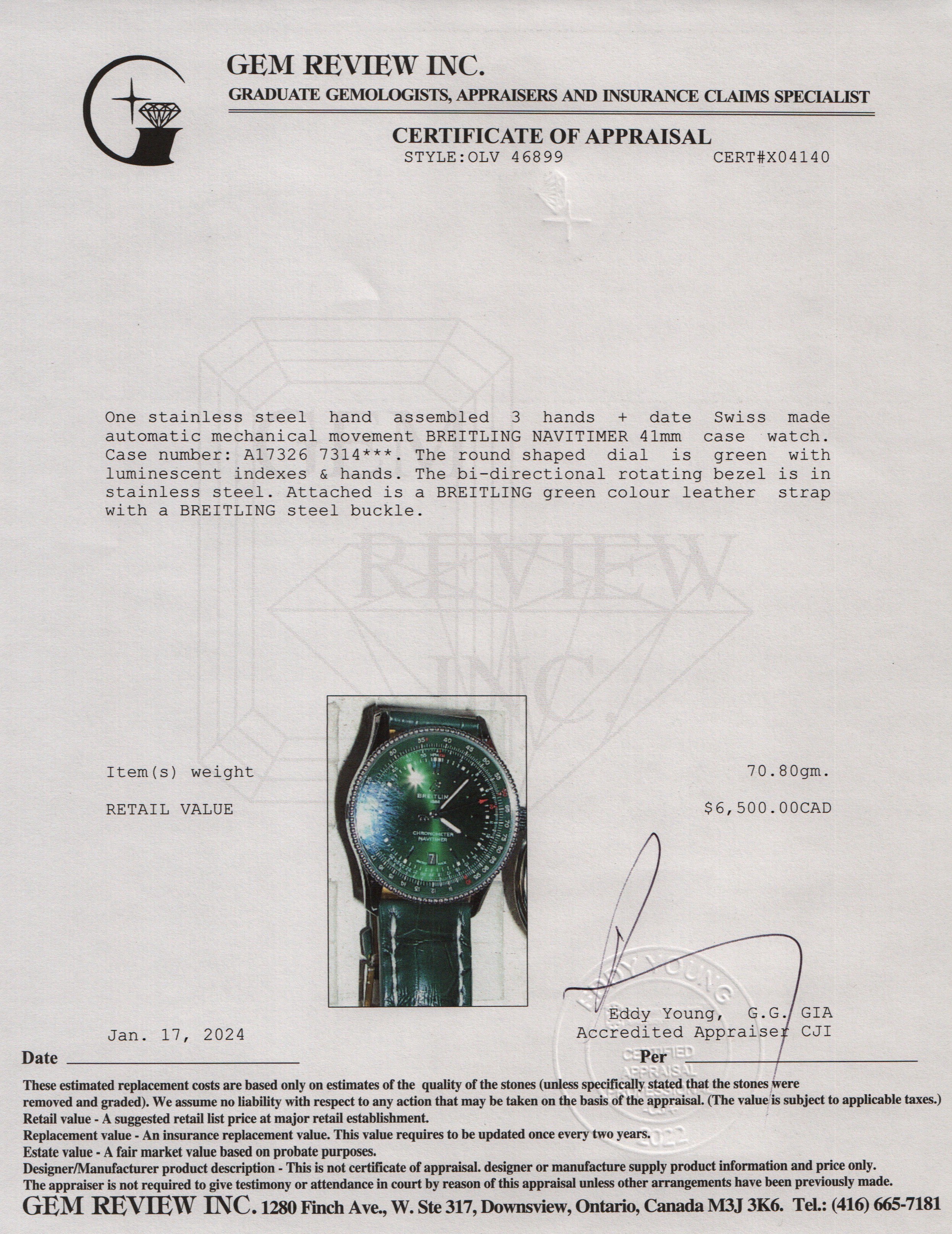 Stainless Steel Navitimer 41 MM Automatic Watch w/ Box